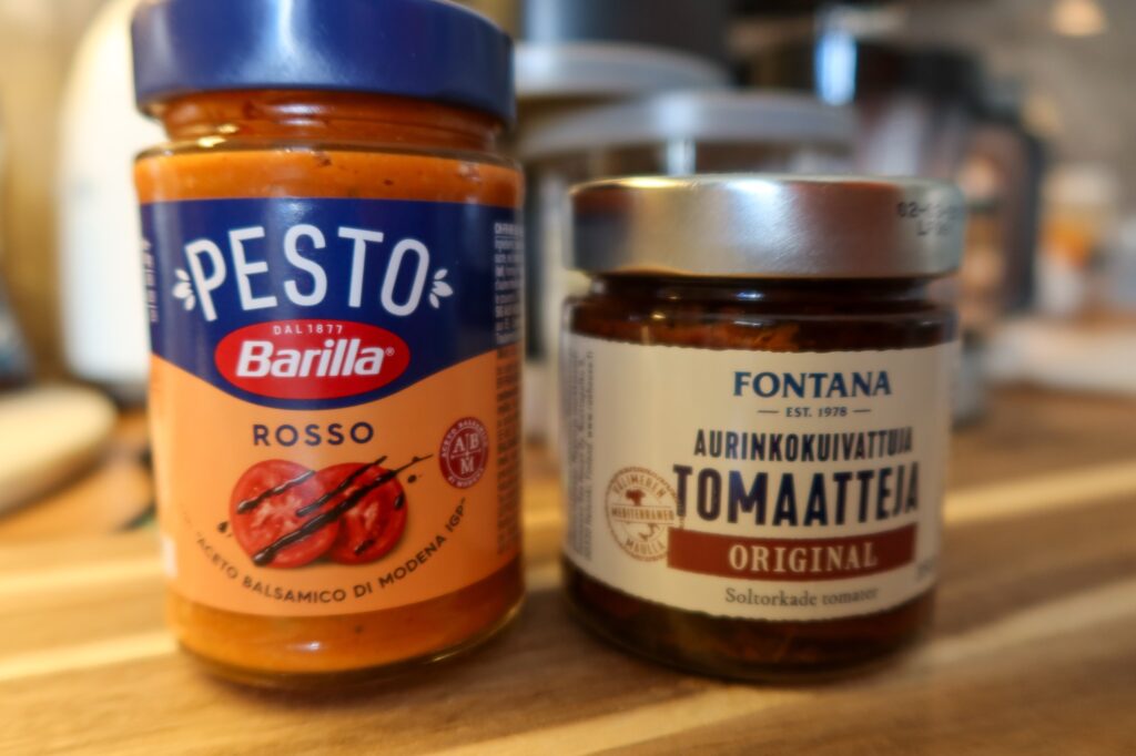 • Undvik färdiga pesto rosso-sorter med socker – välj en utan socker eller gör egen.