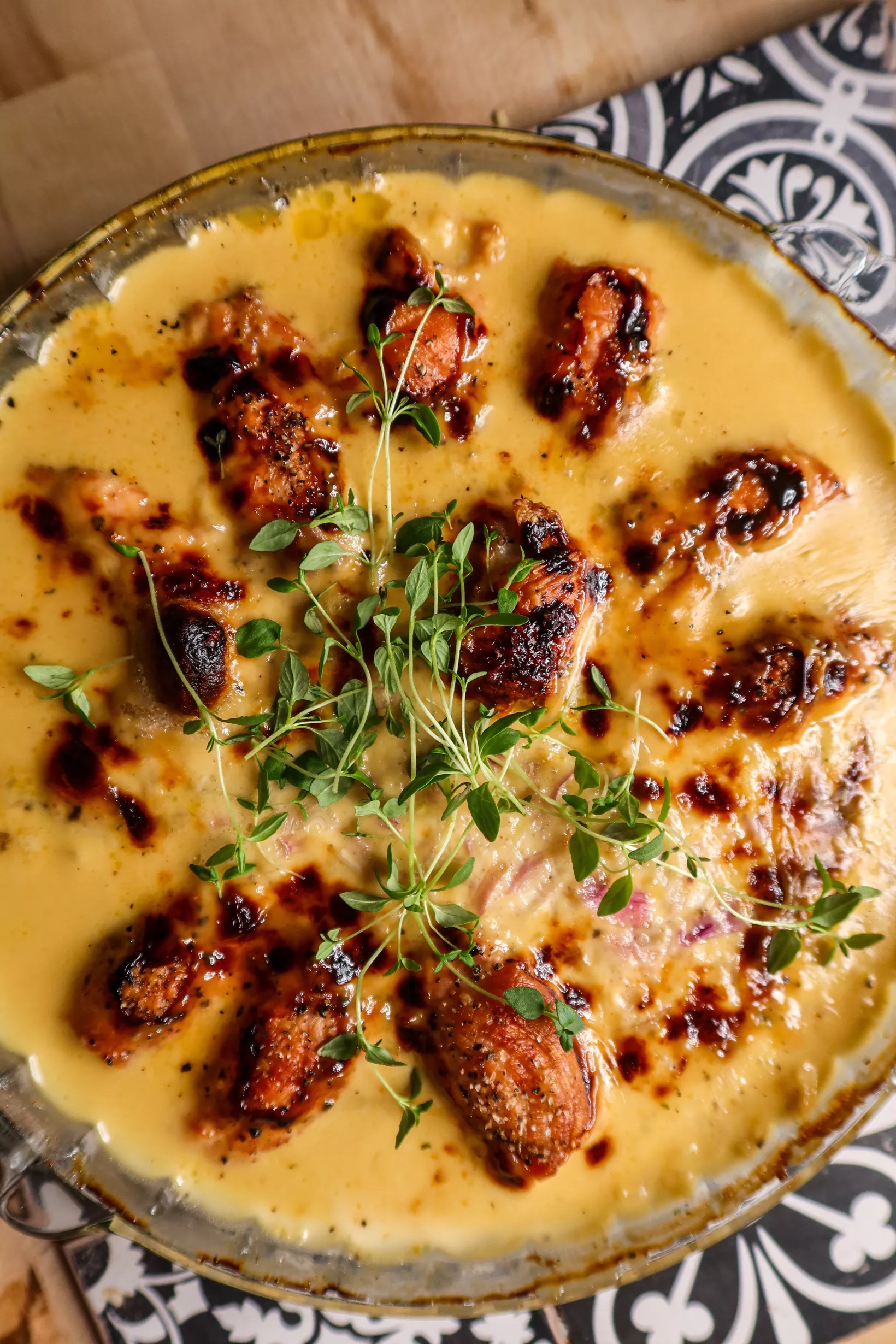Jag gjorde en aaaalldeles fantastiskt god kycklingpasta här hemma häromdagen. Familjen slukade hela i ett nafs, hade en önskan om lite matlådor kanske men tji fick jag. ☺️ Det var ett mätt gäng som satt och ojade sig i soffan här hemma. ”Man åt kanske för mycket….”. Haha, då vet man att det var gott ju. I den här kycklingpastan hade jag i allt som kan tänkas vara gott. Bacon, vitt vin, timjan, vitlök, kycklingfond, västerbottensost och grädde. Det kan bara inte misslyckas.