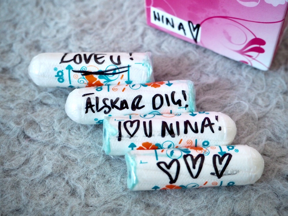 Något att bli lite glad över är ju när man hittar dessa! Mina o.b:n med små meddelanden på. Kan göra en krasslig Nina med mens riktigt glad ju. ❤