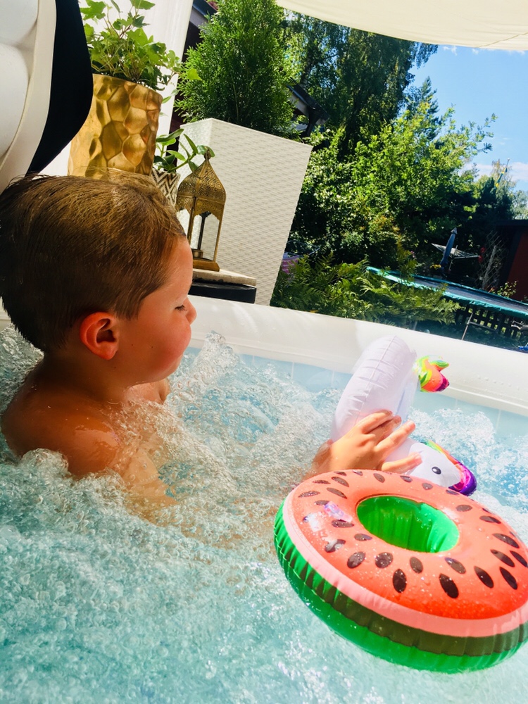 Ja här började faktiskt dagen med lite bubbel i koppen. Det var 38 friska grader. Haha…. mamman i huset njuter medan pojken sitter högröd om kinderna och tycker det är lite för varmt. Har fått sänka till 35 grader nu så ungen står ut.