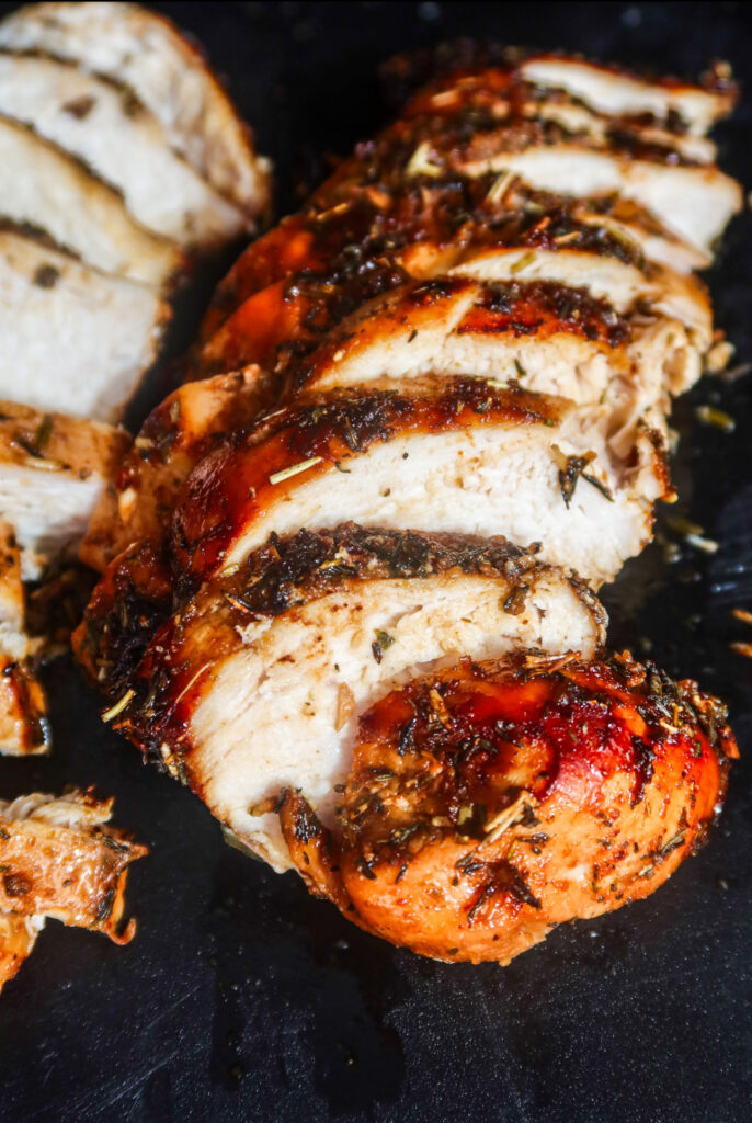 Jag gillar kycklingen mer ”torr” än för saftig, mem för att vara helt säker att kycklingen är klar ska den hålla en innertemp på 72 grader där den är som tjockast. Detta gäller kycklingfiléeroch innerfileer.