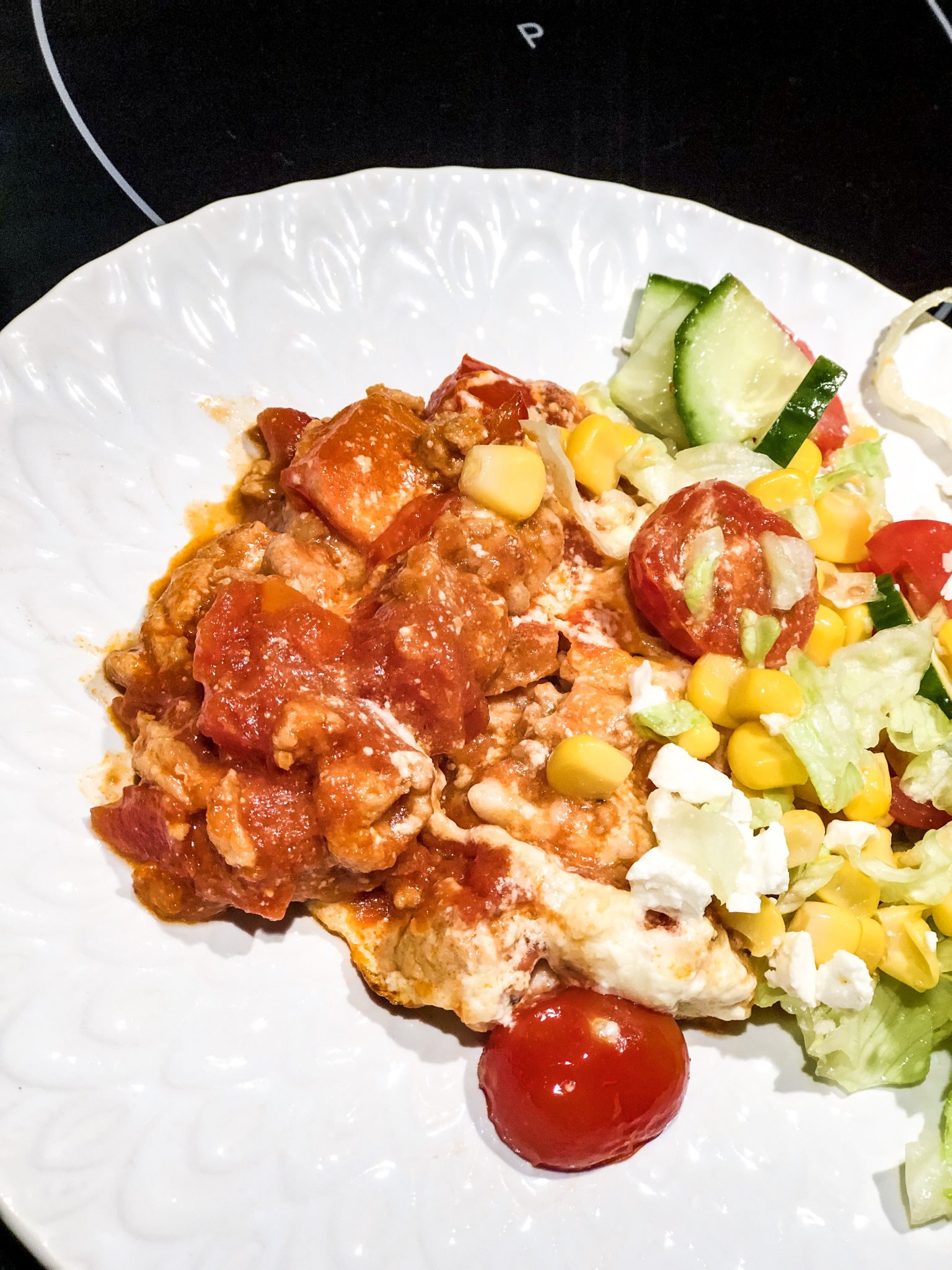 1) Ugn 200 grader. Stek kycklingfärsen i kokosoljan.