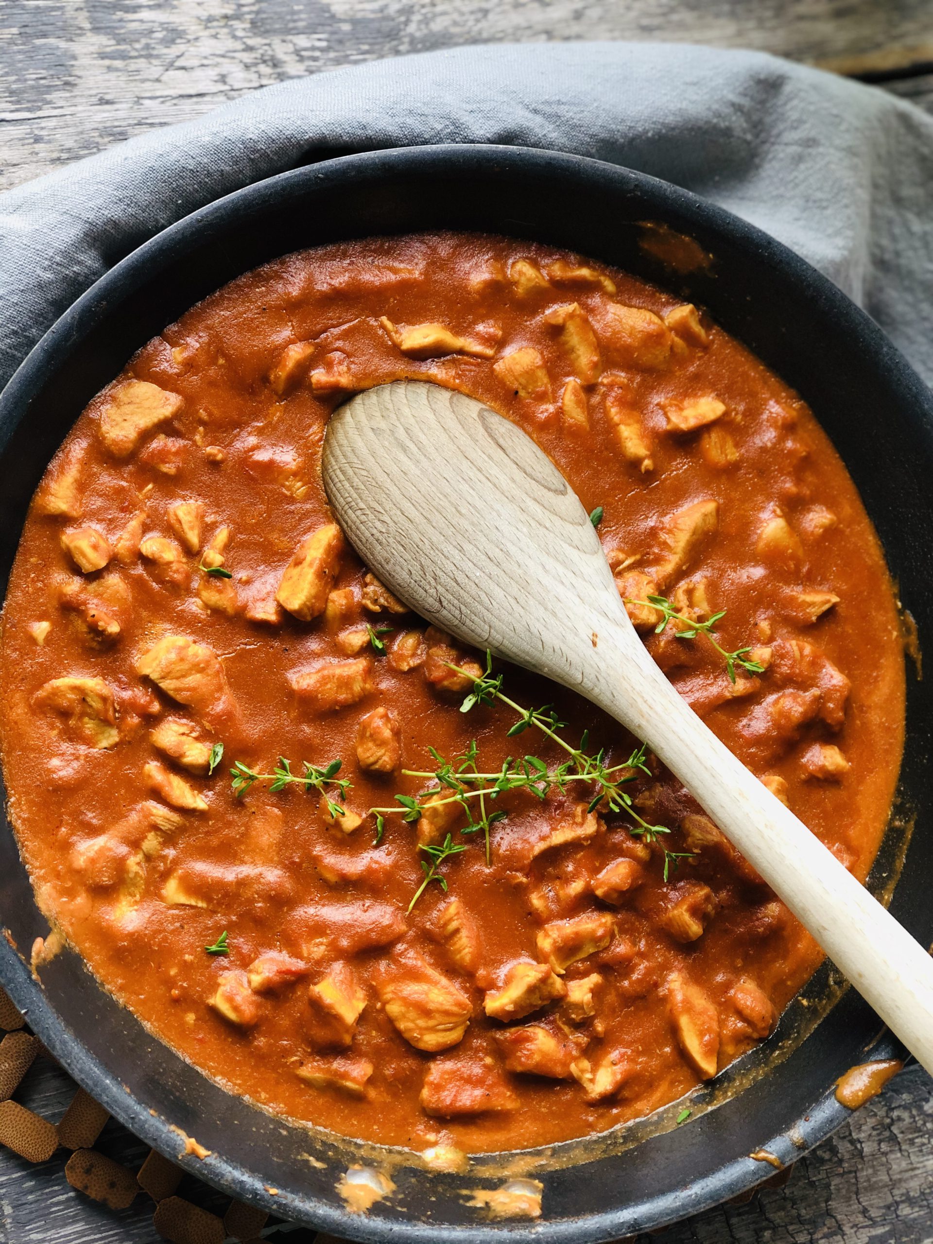 Idag svängde jag ihop en lunch åt oss som blev så god. En slags kycklingstroganoff som passade alldeles ypperligt till pasta. Tänker mig den till ris också, det är också toppen!