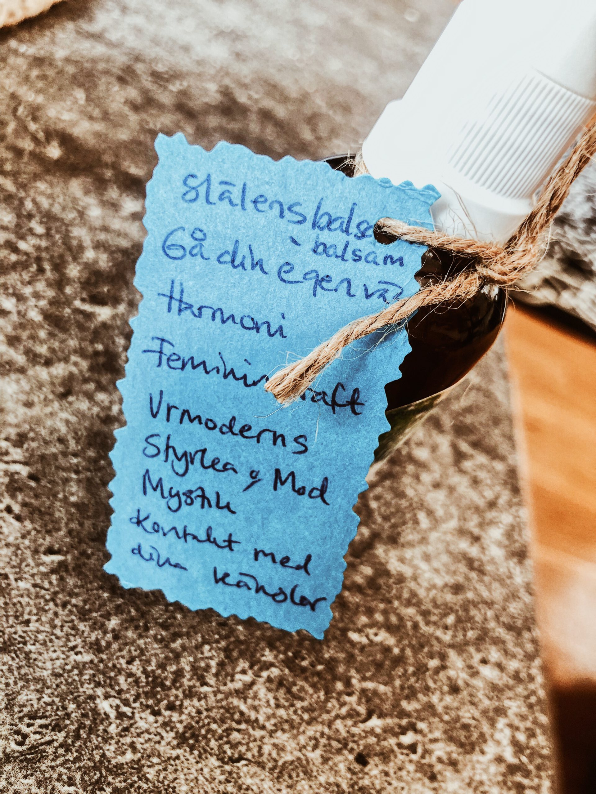 Fick med mig en spray som jag ska spraya som ska ge harmoni. Den doftar ljuvligt, den sprayar jag runt mitt huvud, inte rakt på mig alltså.