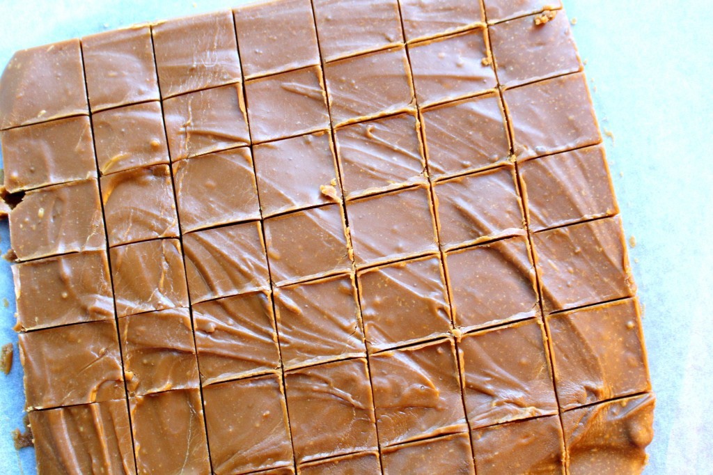 3. Ställ i kylen och låt svalna. Skär i fyrkantiga bitar och förvara i en burk i kylen.