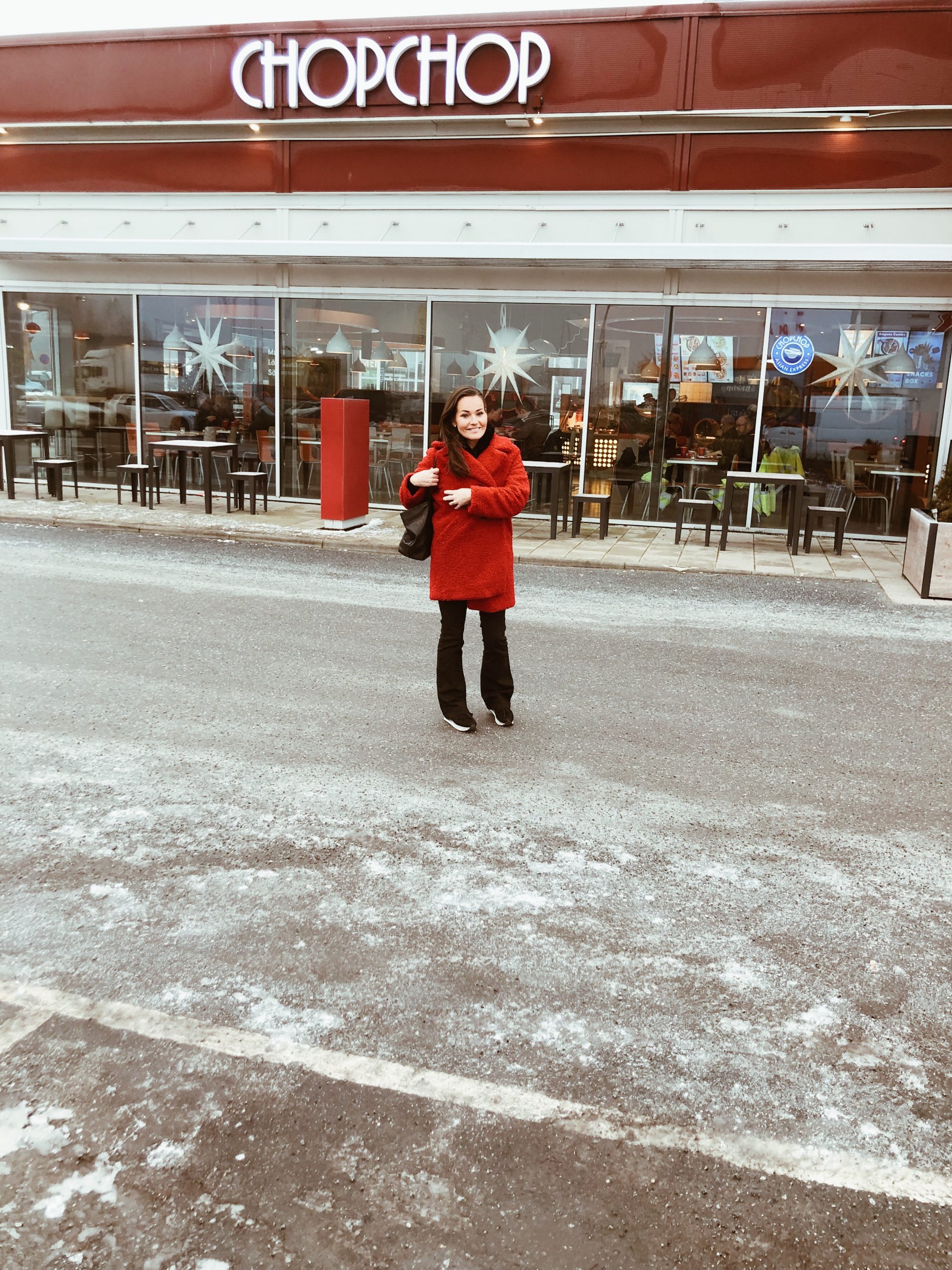 Lunchen idag fick bli på Chop chop. Halkade runt som en Bambi på hal is. Snacka om halt det varit idag. Tänker på gamla tanter och farbröder som ger sig ut. Hoppas de blivit försedda med broddar. Jag har ett par som jag brukar ha när jag går ut på promenader på vintern, skulle tagit dom.