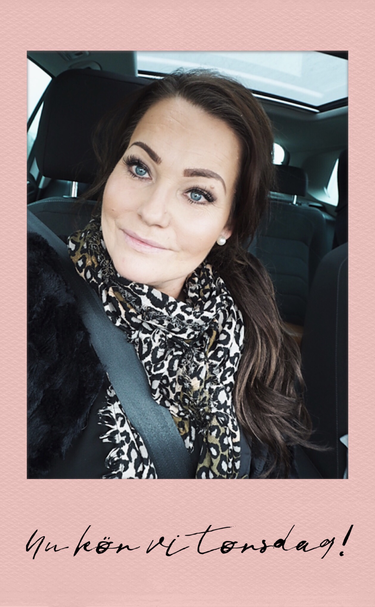 Sitter i bilen och skriver till dig. Blev en stressig morgon hemma hos oss. Kändes som jag käkade gröt, tog på mig bh och sminkade mig samtidigt.