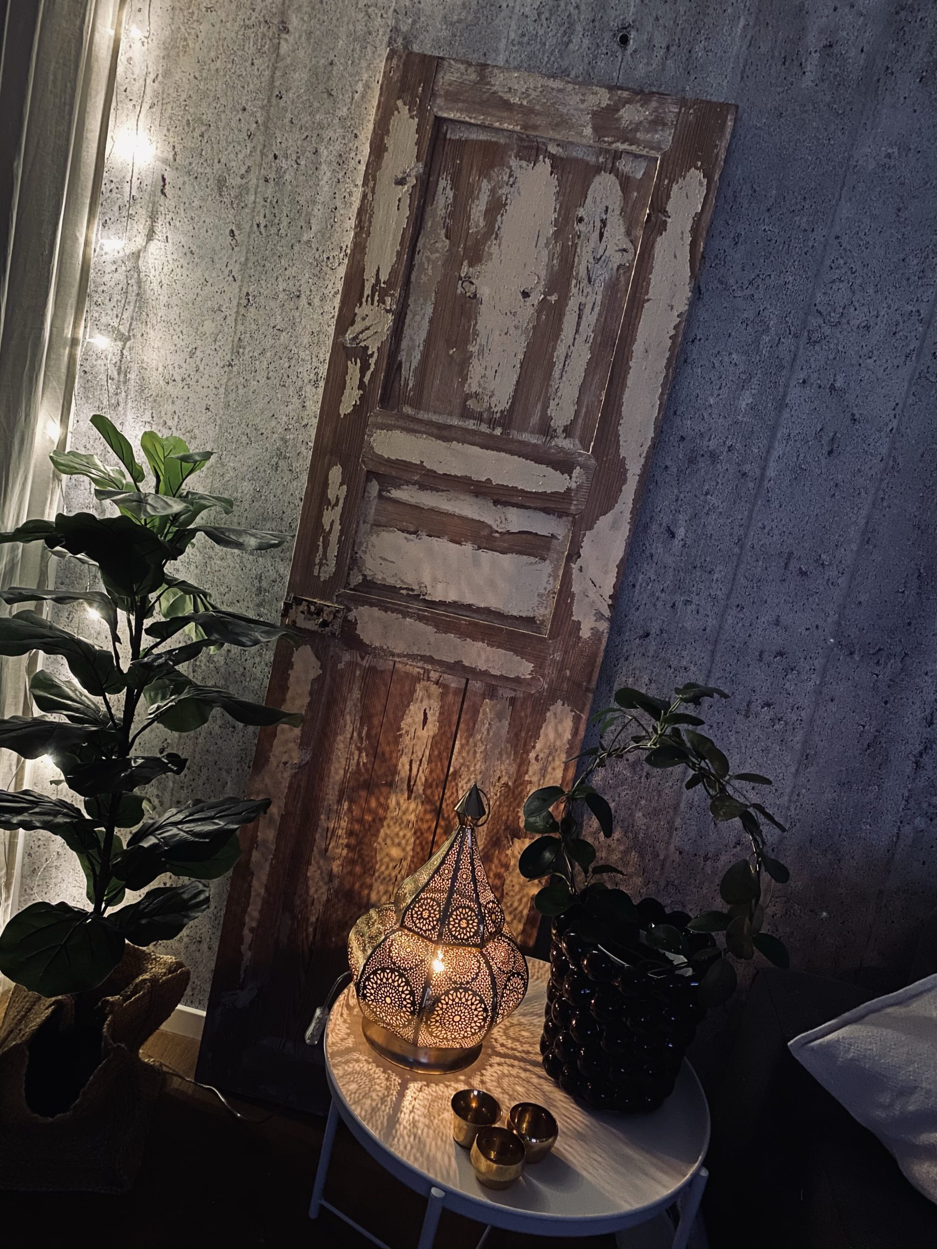 Måste bara visa vad jag köpte på loppis när vi var iväg för några veckor sen. Hur mycket älskar jag inte den här gamla dörren? Den är typ gräddvit på den här sidan och lite grön på baksidan. Älskar slitningen. Vill hänga någon fin lykta på den också.