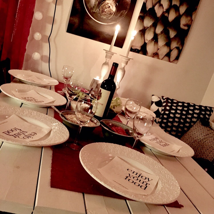 Jag har dukat allt utom bestick. Det blir Pulled Chicken i fralla till middag. Hoppad de ska gilla. Kan skvallra att det är julmust i kvällens pulled chicken.