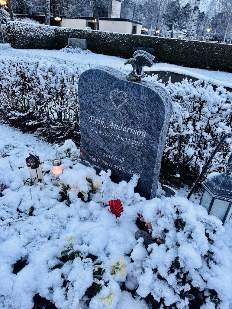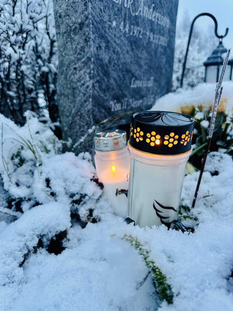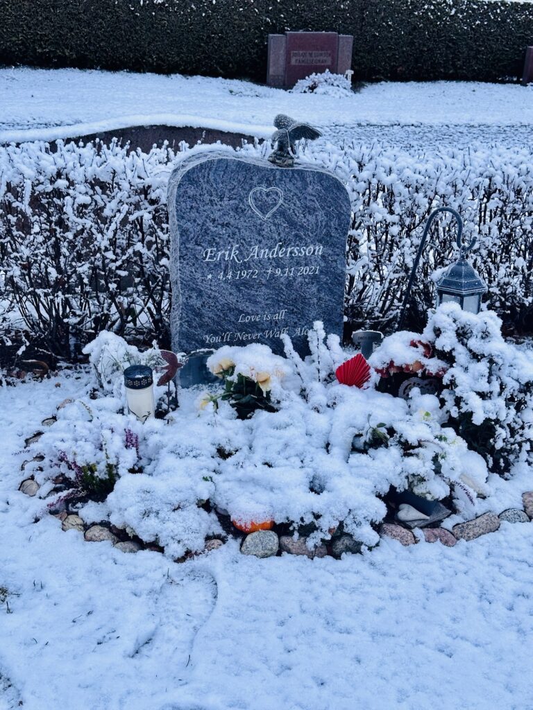 Att hälsa på nära och kära på kyrkogården eller minnesplatsen hör till julen för mig. Jag var och hälsade på min vän Erik häromdagen. Vi lämnade ett ljus, vi tände upp de som slocknat och önskade Erik en god jul i himlen. För er som inte vet så är Erik en vän till mig som drabbades av cancer. När han fått beskedet att inget fanns att göra samlade jag och min vän Aslan ihop nästan en halv miljon till han som han kunde använda för alternativ behandling i Tyskland. Erik fick 8 månader extra i livet, men till slut blev en infektion för allvarlig och kroppen orkade inte längre. Jag var och tog farväl av honom på palliativa avdelningen, jag hann inte innan han dog då jag var hos Thedde i Schweiz, men jag fick säga hejdå ändå. Han låg där så fridfullt med Liverpool tröjan på magen. Han hade gått bort till tonerna av Liverpools officiella låt ”You’ll never walk alone”. Det var en så fin och rörande stund där inne hos honom, vi var så många som satt där, precis så som det var i verkligen livet…. Så många som tyckte om honom.