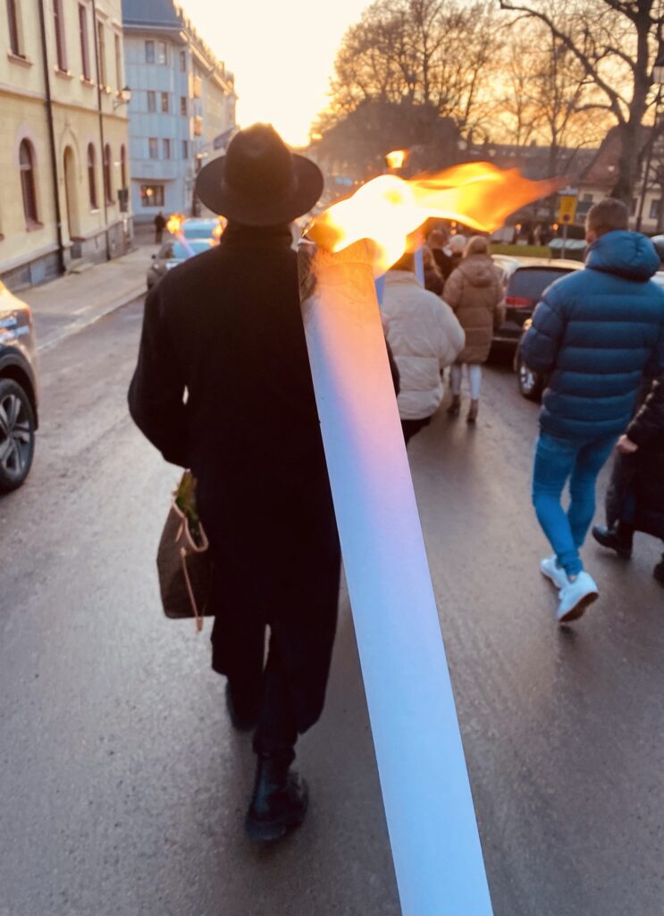 Här gick vi fackeltåg efter Erik till hans begravningsplats. Det var så oerhört fint och lagom till vi lagt i vår ros på hans kista i graven la sig mörkret över oss. Det var så mäktigt och vackert.
