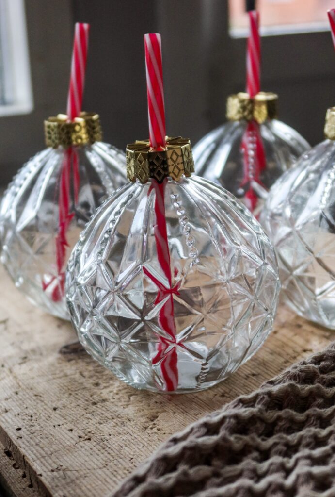 Kallar dem för julpynt även om det tillhör dukning. Men det är ju också en form av julpynt tänker jag. De här glasen som ser ut som julkulor. Dessa har jag serverat julsangria ur, pepsi max, julmust, äppelmust, äppelglögg ja men you name it. Det som hör julen till.