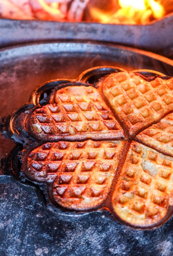 Något som är så mysigt är jag när jag flyttar in i mamma & pappas grillkåta och får stå där och laga mat eller som här. Steka våfflor i våffeljärn över öppen eld. Det är något så himla mysigt med det, så rogivande och härligt. Ingen musik eller andra ljud, bara jag & elden. Sist jag lagade något där gjorde jag dessa räkvåfflor. Tips tips, recept HÄR.