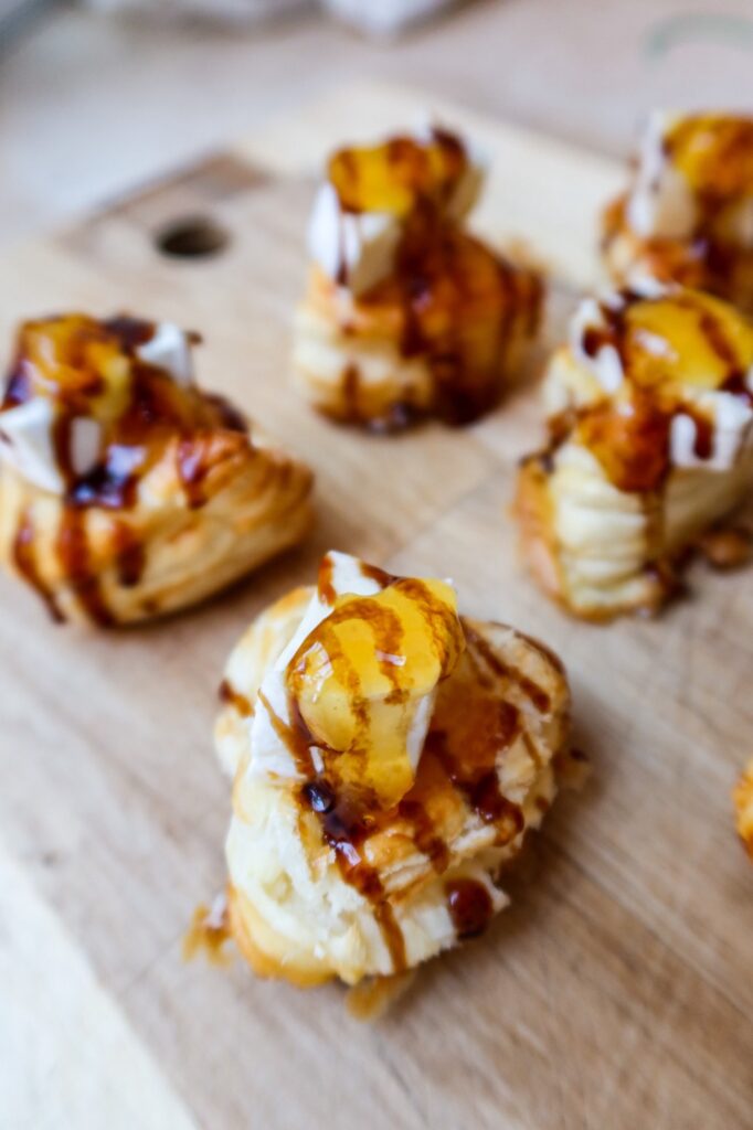 Smördegspuffar med brieost och balsamico