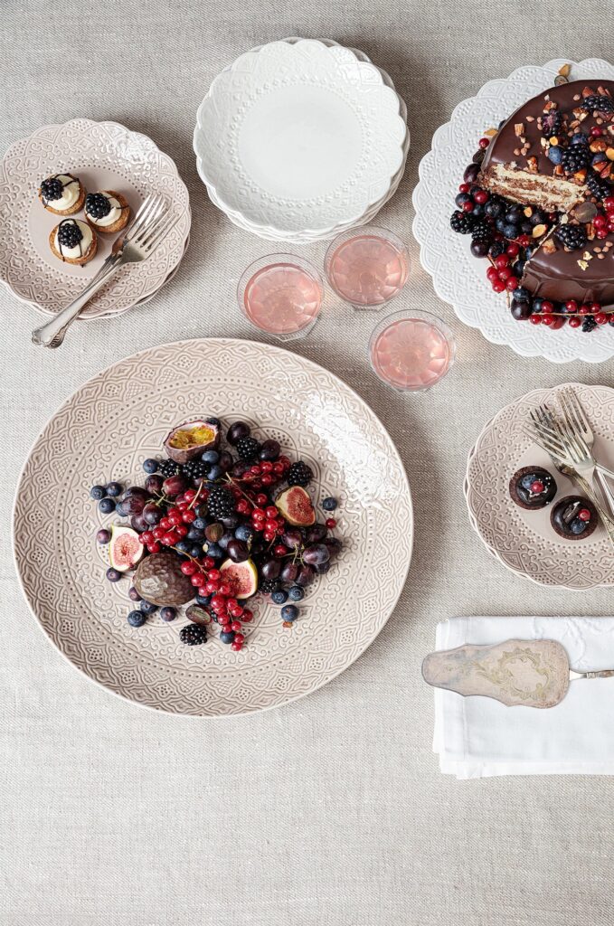 HÄR (<klicka) har du ett sånt äkta lyxigt trippelställ som det brukar vara på Afternoon Tea. Det var nedsatt nu och fanns även i svart. Sedan placerar du bara passande assietter i det. Så snyggt!