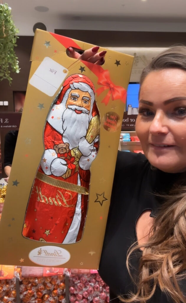 Detta var en upplevelse ska jag säga! Jag älskar att besöka Lindts butik på Mall of Scandinavia – så mycket god choklad och det blir julstämning bara man kommer in där tycker jag. I år fick jag dock en smärre chock när denna chokladtomte uppenbarade sig, haha…. Den som får denna kommer nog ha fullt skägg med att äta choklad hela julen.