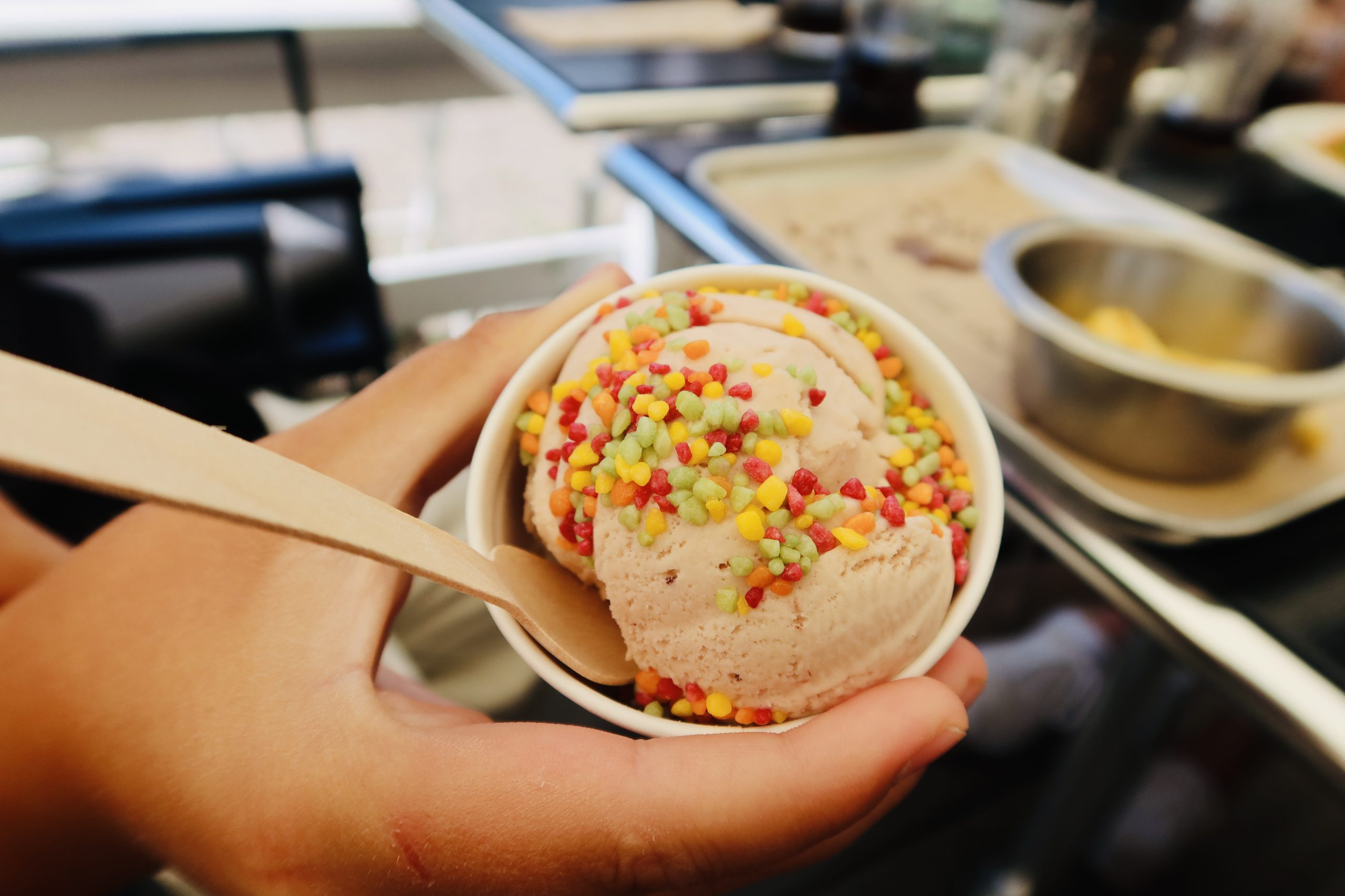 Vi åt lunch vid hamnen. Tyvärr var all lunch slut när vi kom ned vid 13 så vi fick beställa från à la carten istället. Blev en dyrare lunch än vi räknat med…. 🙈 Efterrätten blev från glassboden.