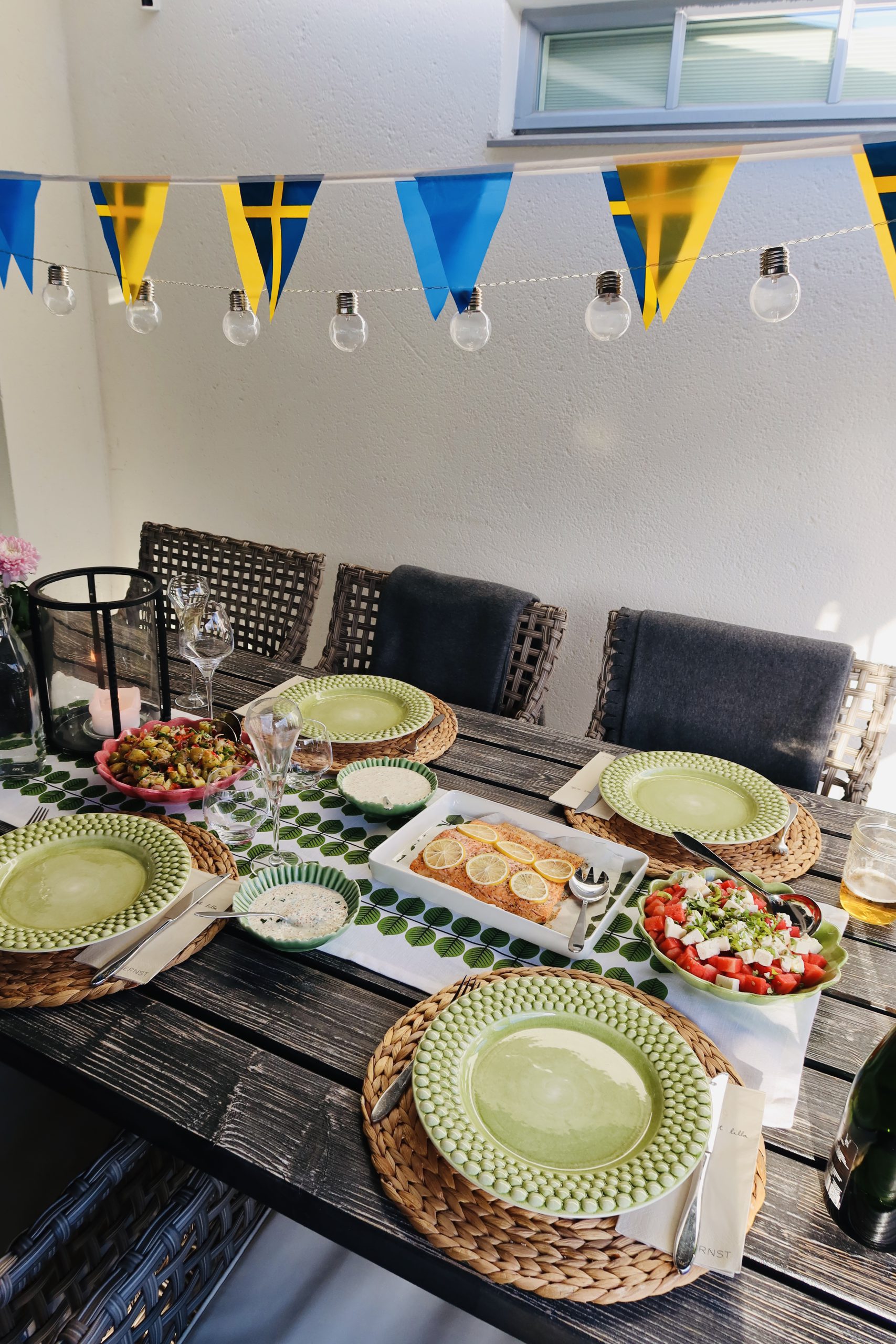 Saras gröna tallrikar är från Mateus och finns HÄR // oysterskål rosa HÄR // oysterskål grön HÄR // Ernst servetter HÄR.