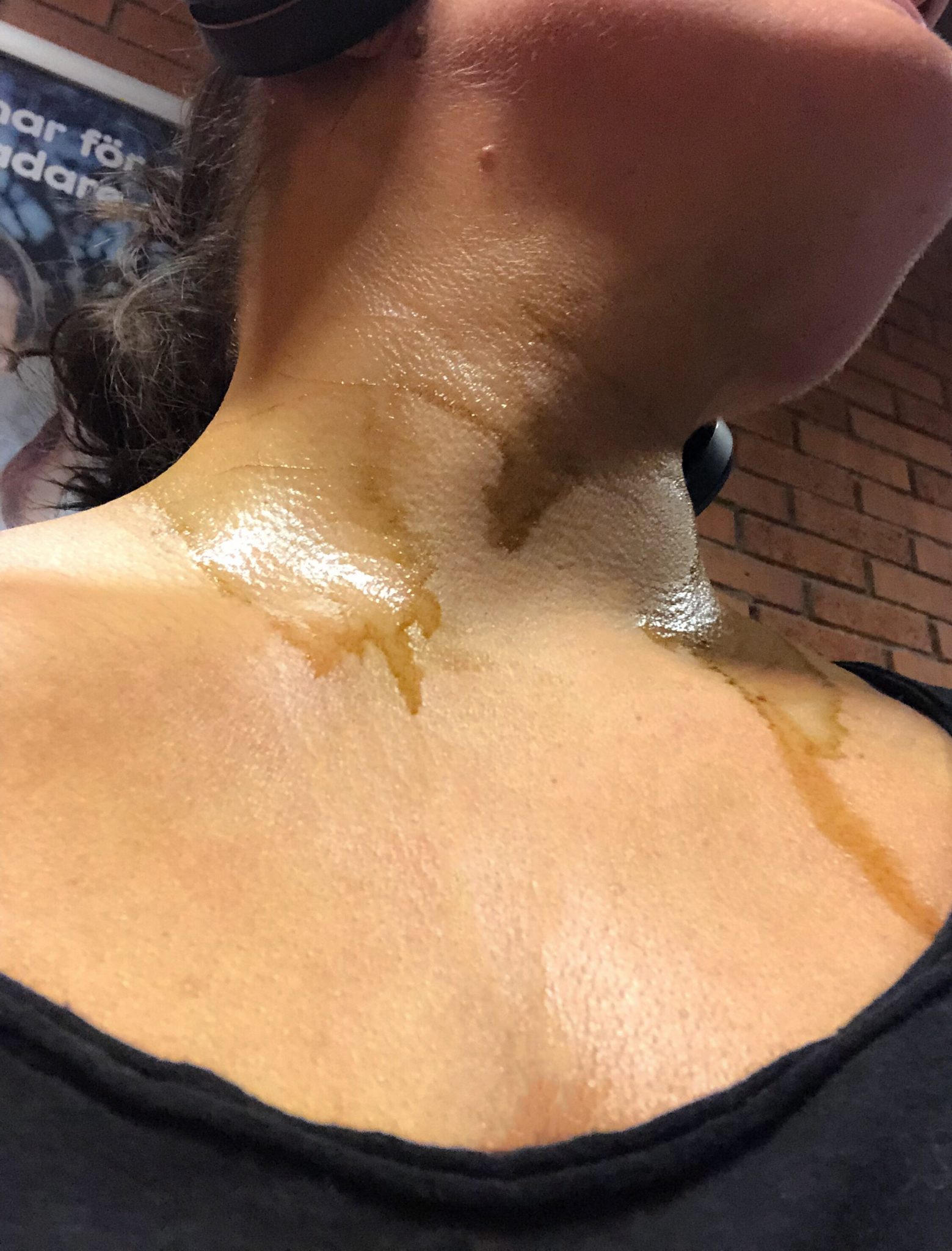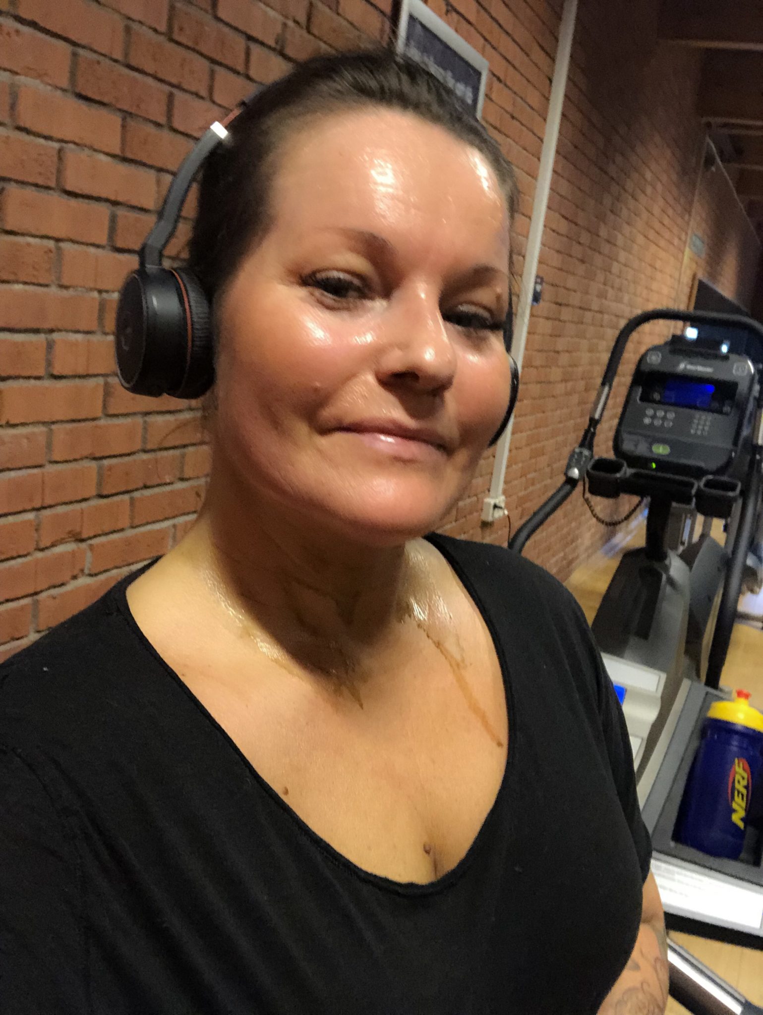 I morse åkte vi och tränade igen. Hörni, ett tips till er så ni inte råkar ut för samma sak. Duscha bort brun utan solen innan ni springer på ett löpband och svettas sönder. Hahaha…. OMG. Tur att Tony var med och kunde hojta till om det så jag kunde torka bort.