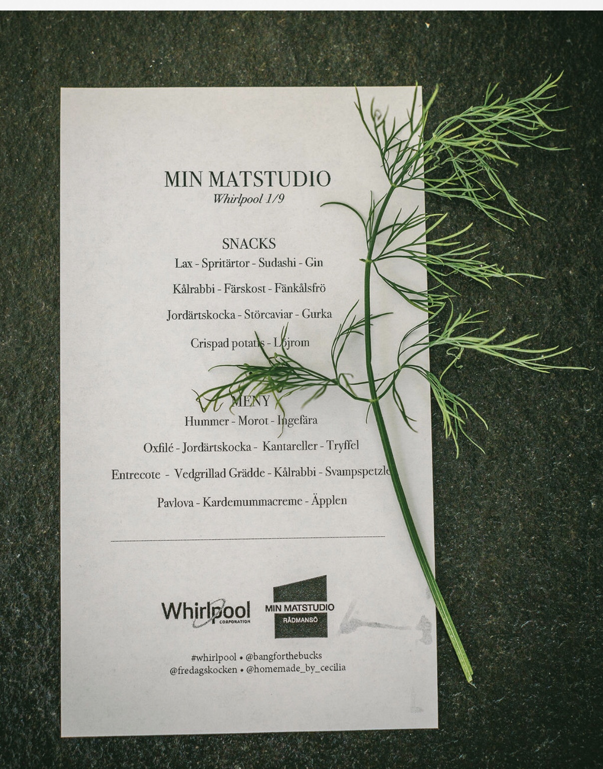 Nu MÅSTE jag ju berätta om den här middagen som jag var på här i förra veckan. Min vän Fredagskocken och jag tillsammans med Whirlpool bjöd in till en middag i Mattias (Fredagskocken) och Cecilias underbara matstudio utanför Norrtälje. Matstudion är allt man kan önska sig, perfekt att baka och laga mat i (perfekt för en bak och matnörd som jag är) och det ligger på en helt magisk plats med magisk utsikt.