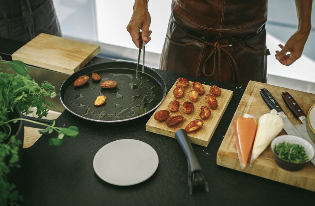 Här förbereddes sedan varmrätten! Som du ser så får det plats 2 stora stekpannor och 2 kastruller på hällen och det finns fortfarande plats. Jag fick smaka på morotspurén som gjordes i en av kastrullerna och kan säga att det var bland det godaste jag ätit!