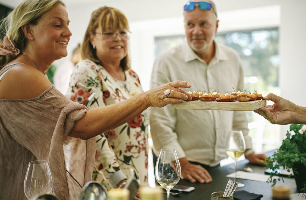 Medan Mattias och jag stod i köket så fick gästerna lite gott att dricka och också smaka så småningom.