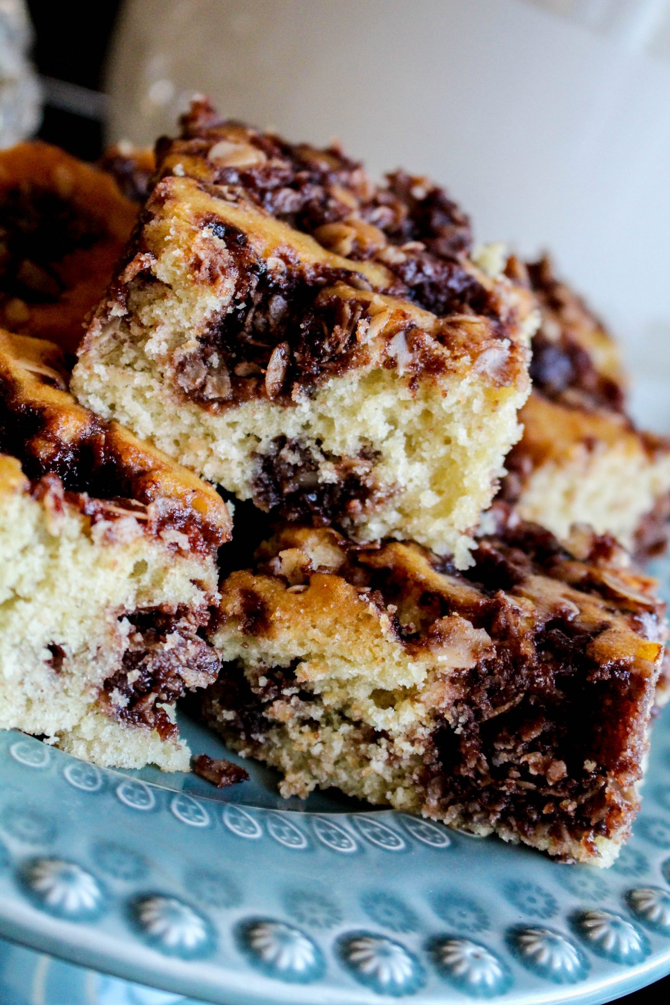 Igår bakade jag ju en kaka som vi ska bjuda mina svärisar på när de kommer och hälsar på. Ojoj, vilken kaka. Den här måste du prova verkligen! Det är en kaka du bakar i långpanna. En mjuk saftig kaka med lite crunchig ripping uppepå kakan som under gräddningen liksom borrar sig in i själva kakan. Helt fantastisk, denna ska jag baka fler gånger, det är en sak som är säker!