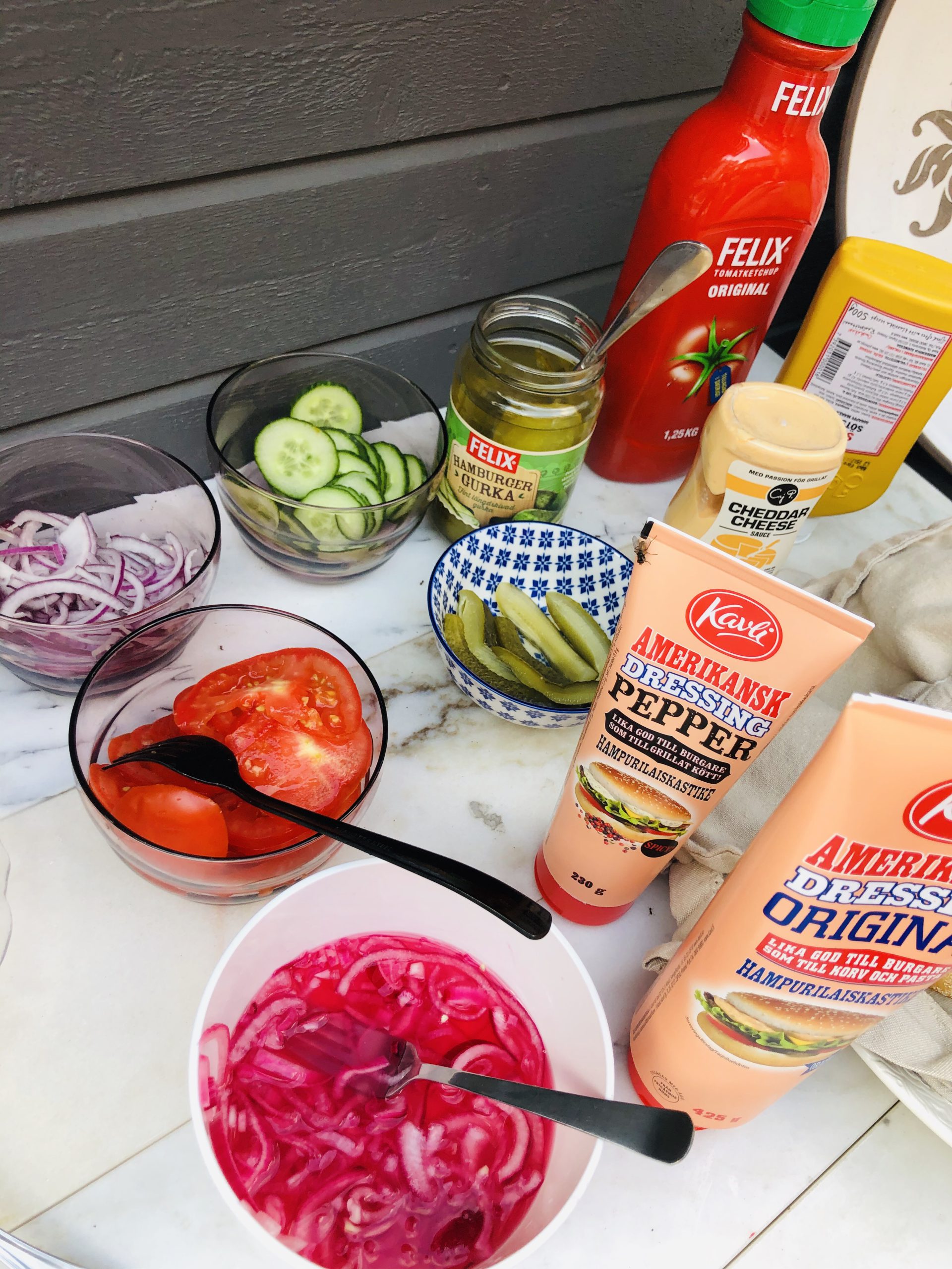Väl hemma bytte vi snabbt om och gav oss sedan iväg på cyklarna mot grillkväll hos vänner, det var Majsan och Mattias som bjöd in. Där väntade magiskt goda hamburgare! Mattias är kock och det märks att han kan sin sak!