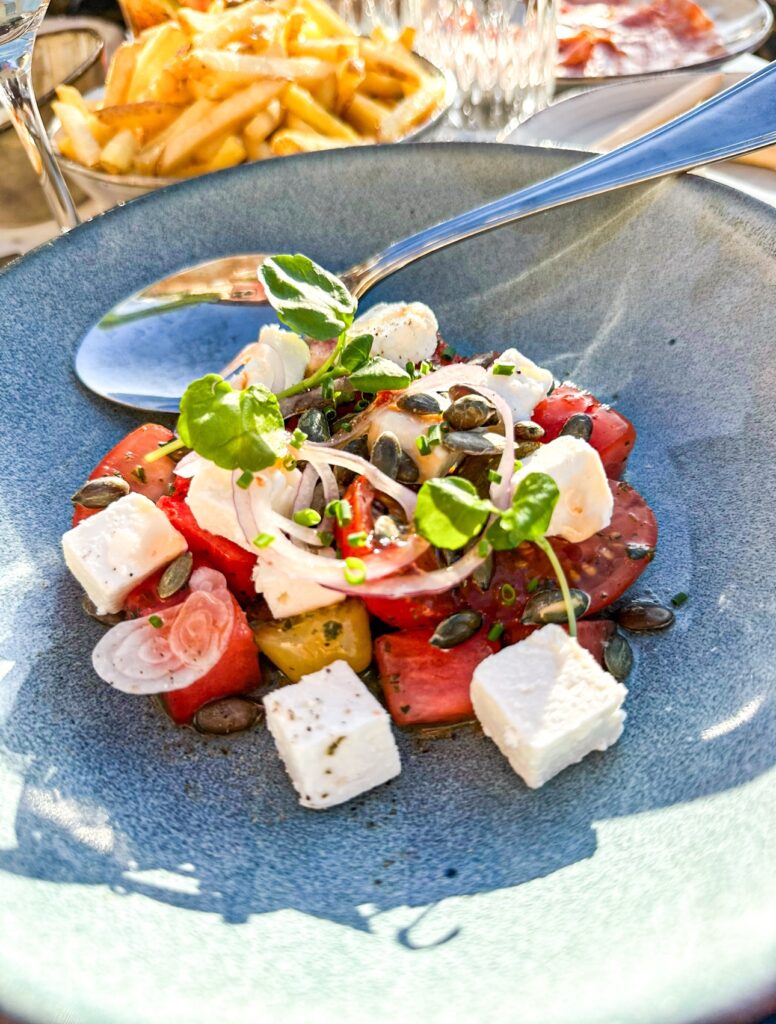 När vi var på Gotland så fick jag avnjuta lite tapas på Lille Fernandes . En liten medelhavsinspirerad bistro med världens härligaste lilla uteservering mot Visby hamn. Åh vad vi njöt av kvällen! Gotland är magiskt. Kan säga att jag stornjöt av sommarens fräschaste sallad också. Den vattenmelon- och fetaostsalladen med gula & röda tomater, rödlök, pumpafrön och en söt dressing som jag åt var magiskt god. Perfekt som förrätt, till grillat eller som lätt lunch i solen. Jag tänkte jag skulle dela med mig av receptet på den, jag frågade inte men har nog lyckats komma underfund med vad det var i den – har provat mig fram här hemma.