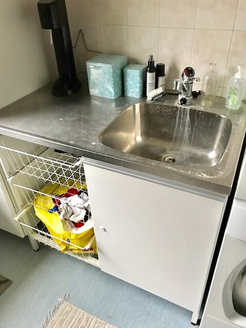 Själva diskbänken och väggen ovan den är det utrymmet som går att ”piffa” lite som jag kan se på bilderna.