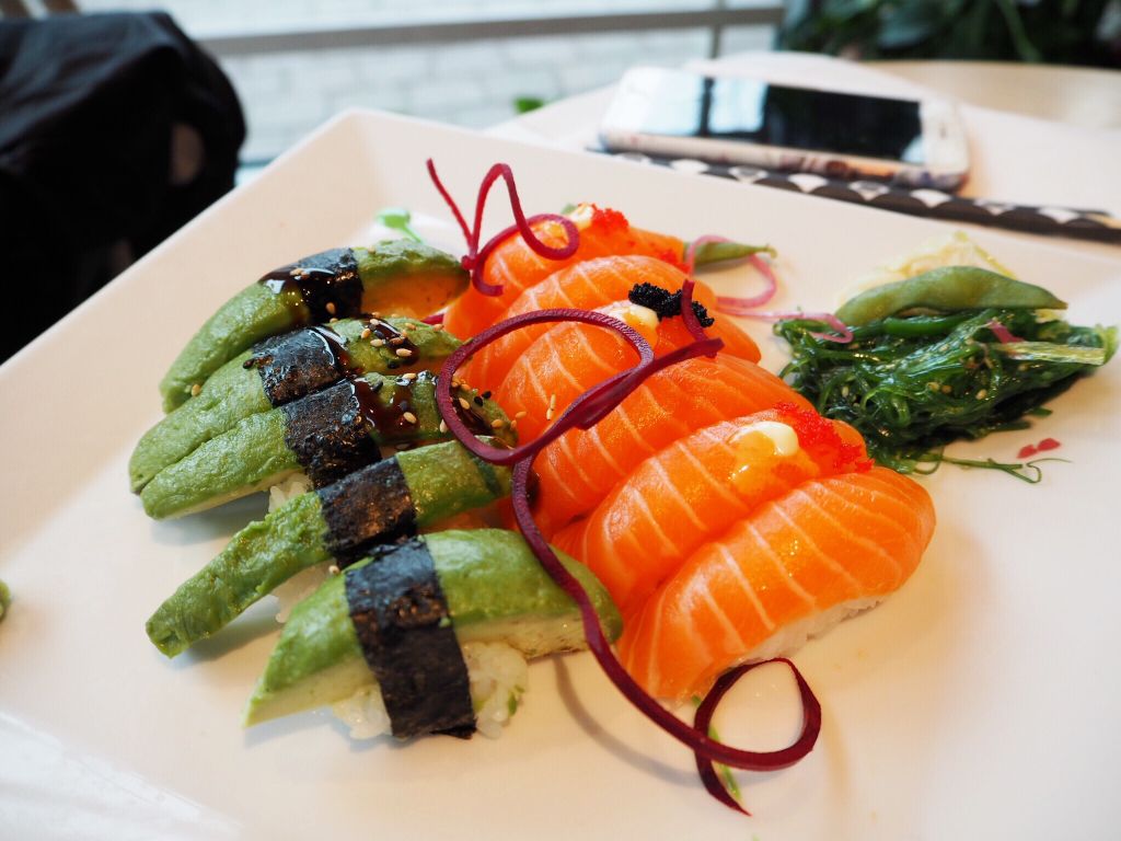 Äntligen fick jag hem min fina mamma igen. På vägen hem brassade vi förbi Tony och hans jobb för att kunna käka lite lunch ihop. Sushi för mig och de andra åt dagens lunch. Gött gött! Kört igång ett spännande matschema nu och där kunde jag få plats med sushi på mitt matschema just idag. Tur!