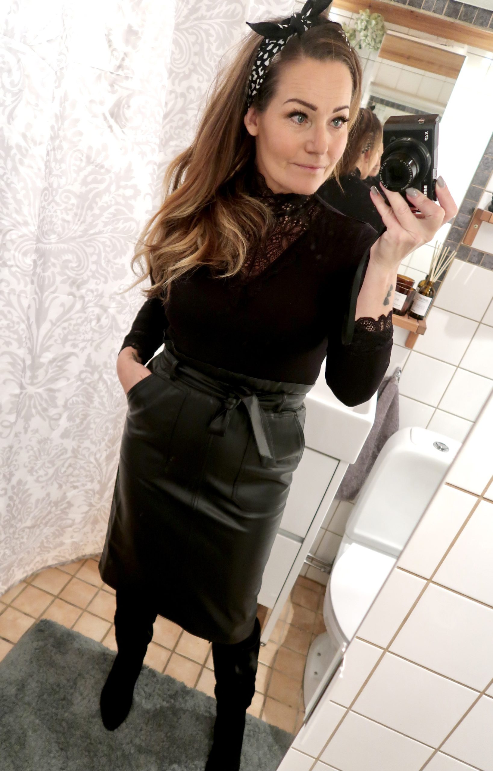 Kjol i skinnimitation // Topp med spetsdetaljer //Stövlar