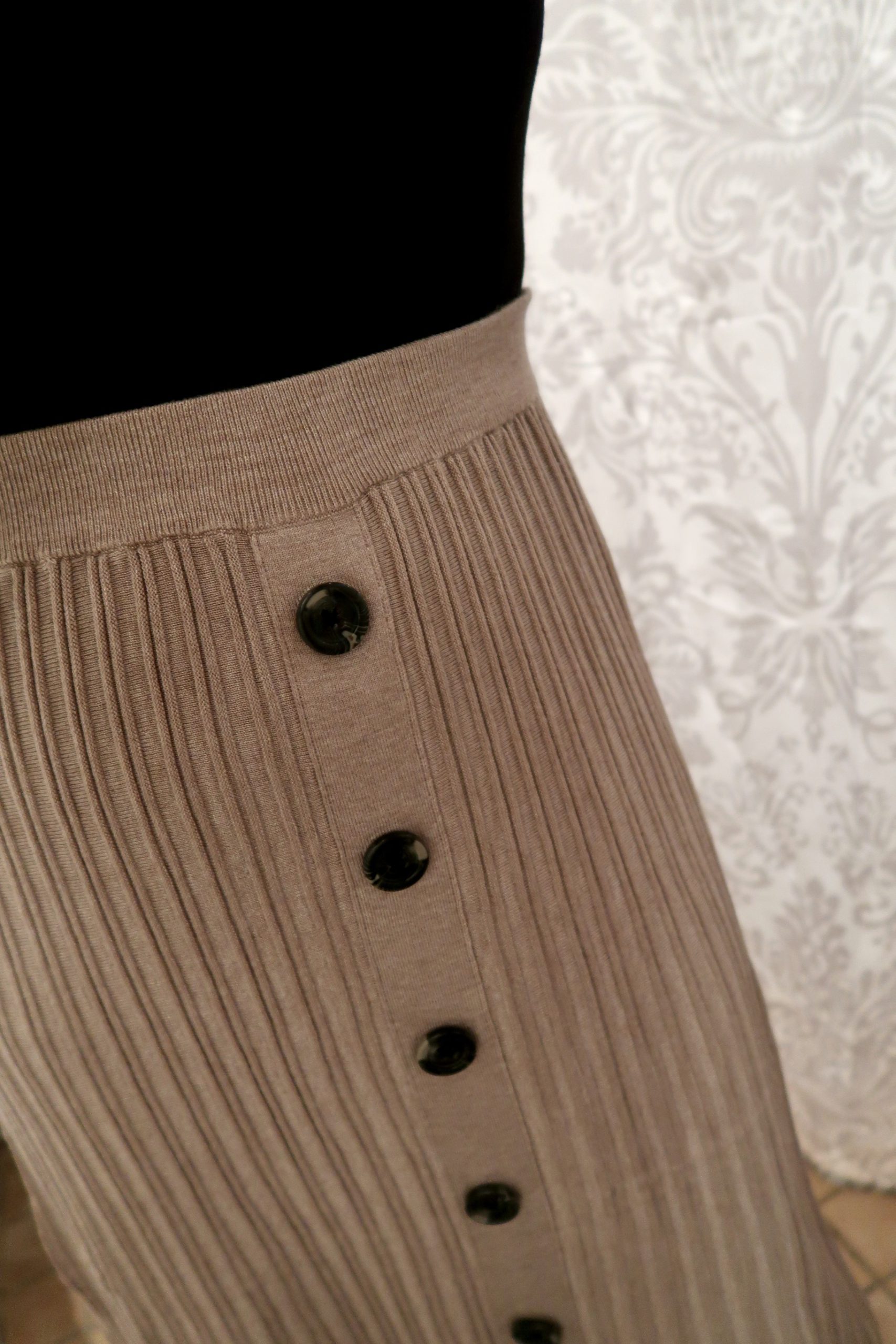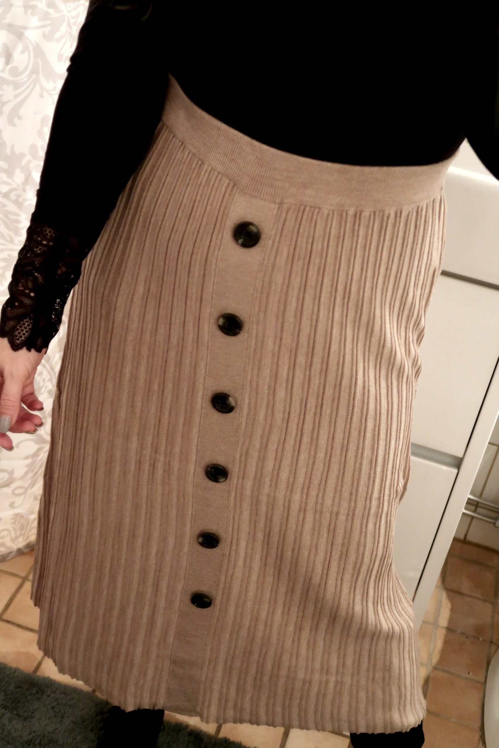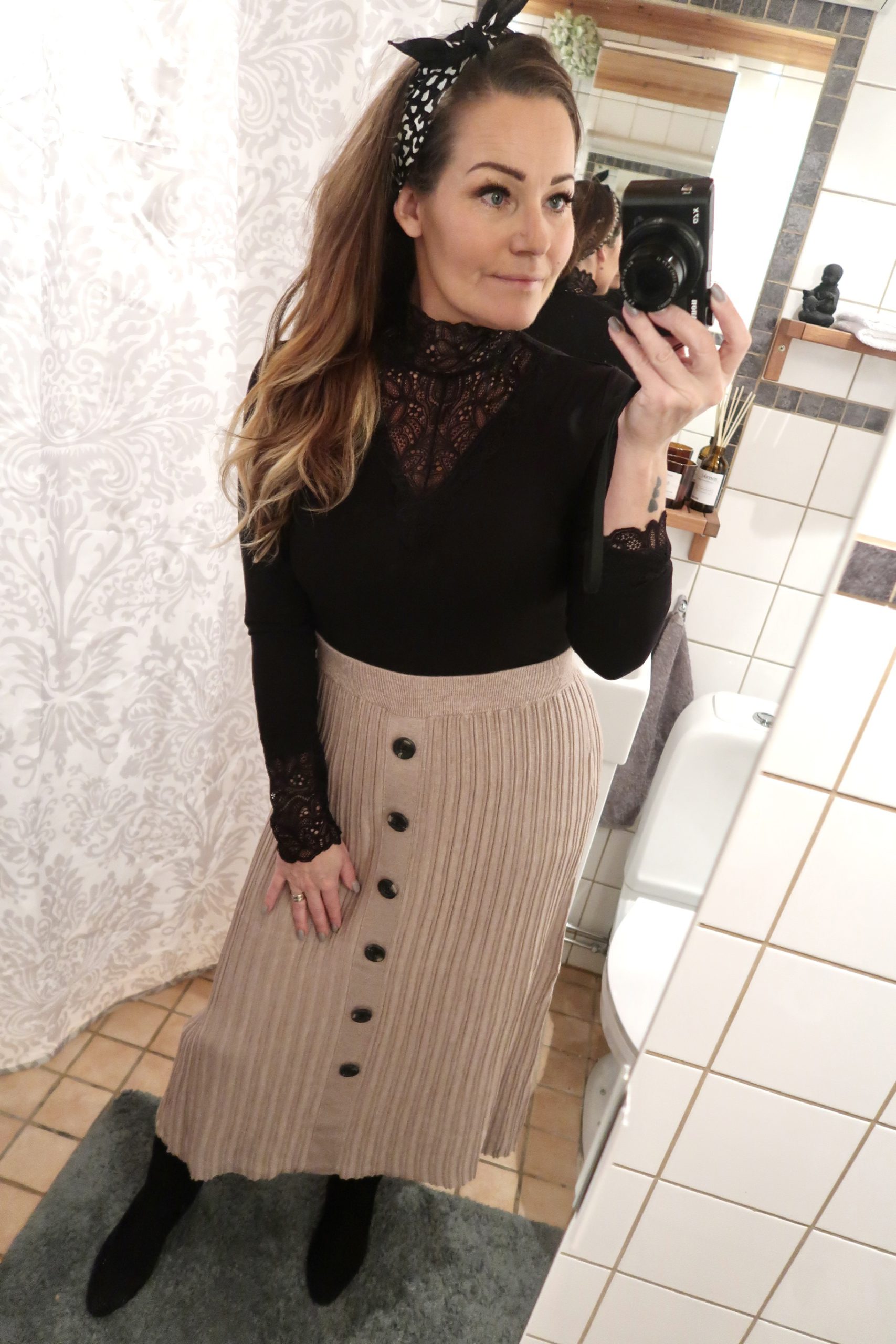 Stickad kjol // Sweatshirt med puffärm // Stövlar