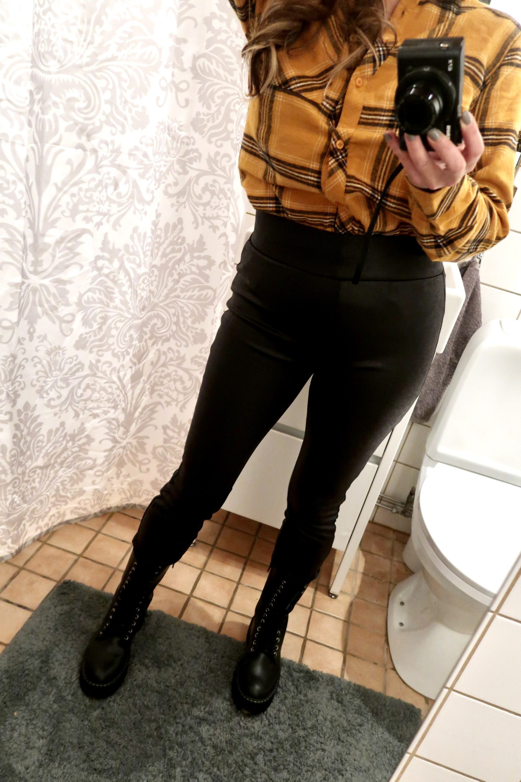 Skjorta // Leggings skinnimitation med bred midja // Kängor (liknande)