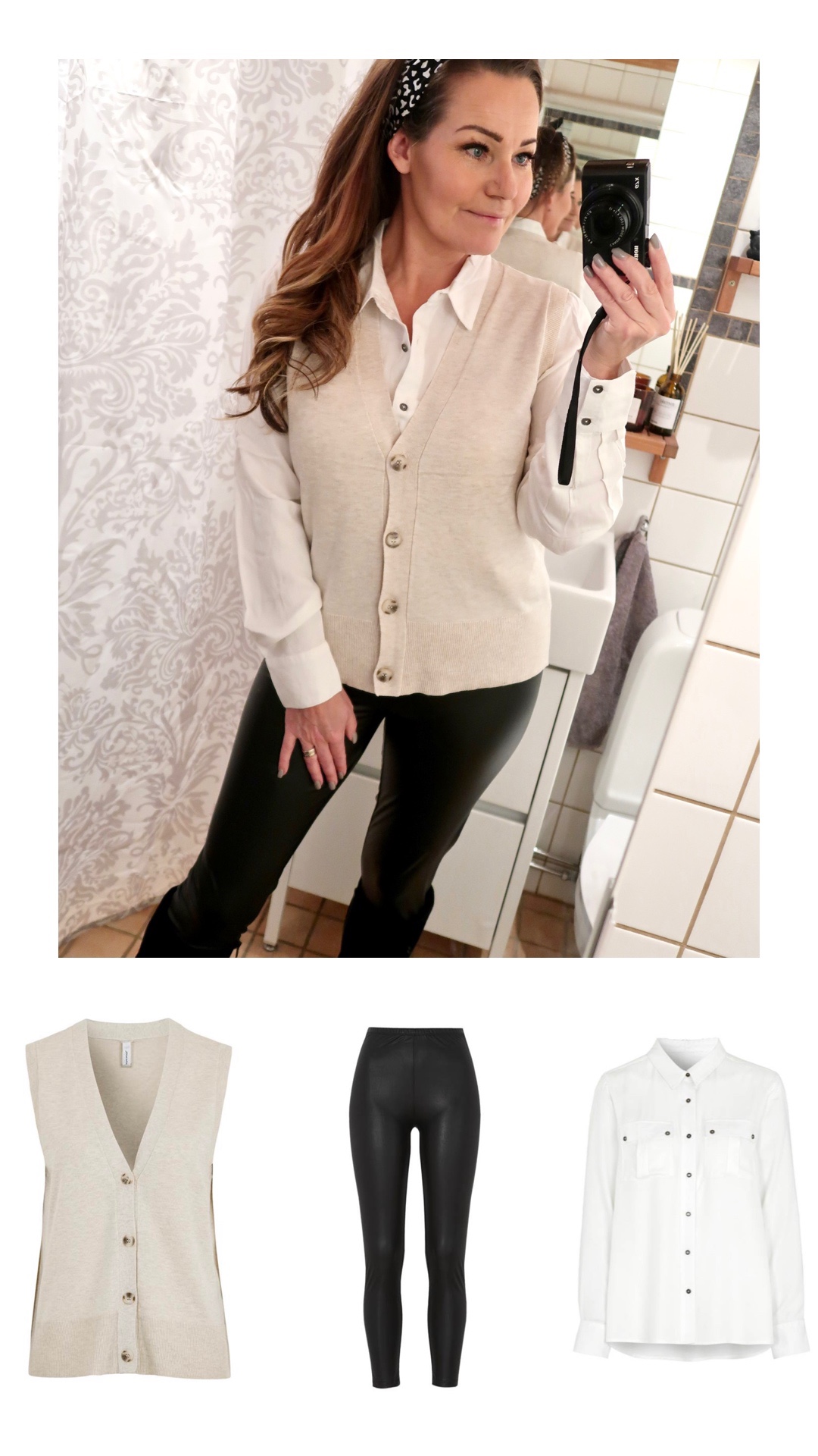Finstickad väst // Skjorta // Leggings skinnimitation //Stövlar