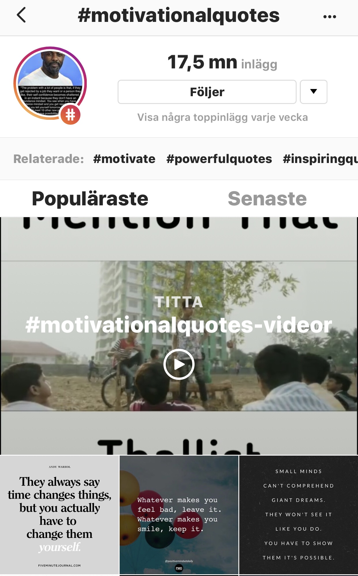 Inte en speciell Instagram just idag men en hashtag som jag följer. Du vet väl att du kan följa hashtaggs nu? Perfekt tycker jag. Den heter #motivationalquotes och då dyker det upp såna där peppande härliga quotes i ditt flöde. Hur härligt som helst.