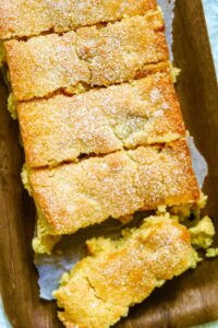 4) Lägg bakplåtspapper i botten på en brödform på ca 1-1 1/2 liter. Bred ut smeten i den.