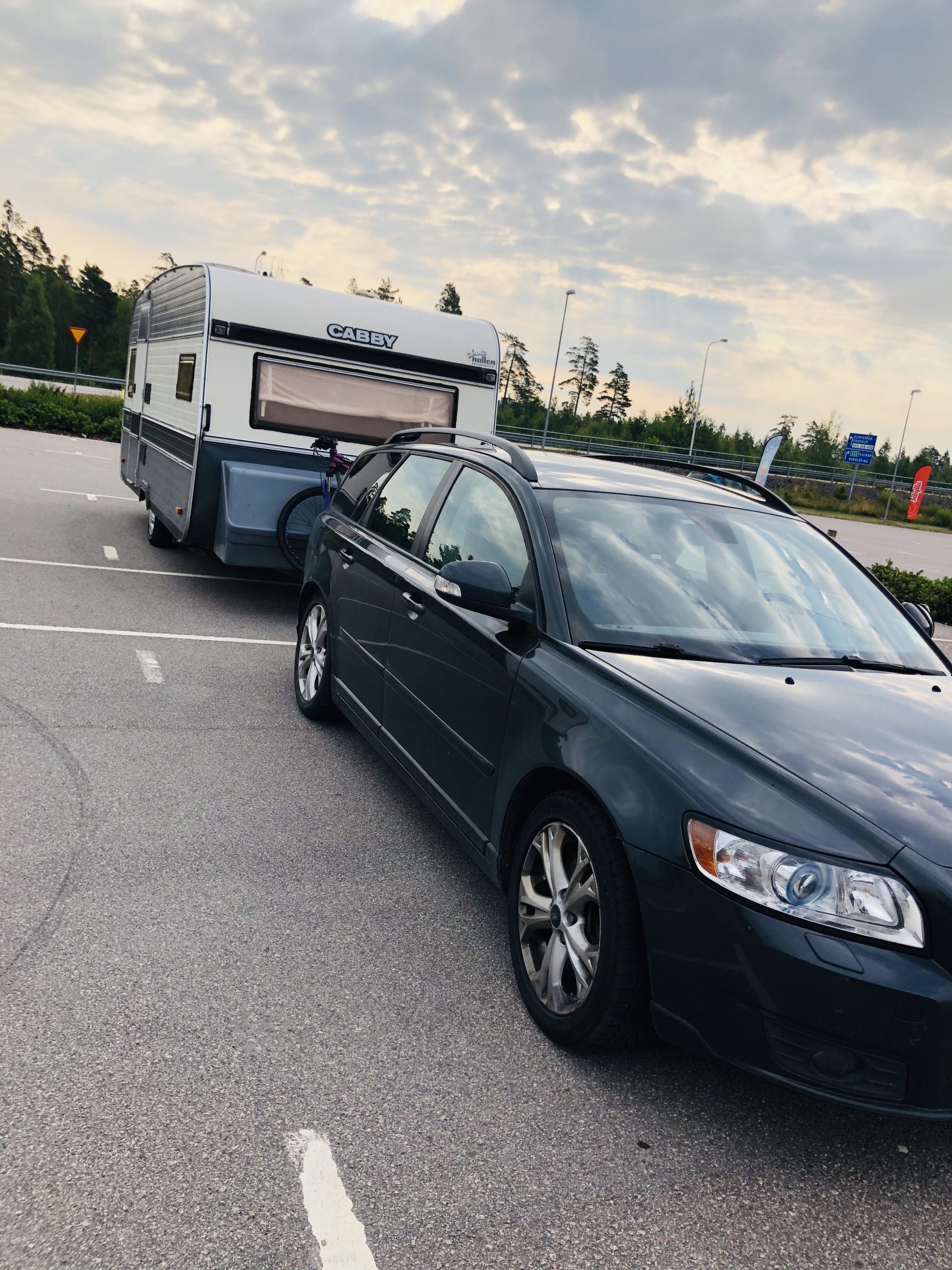 Kl 23 igår kväll landade vi här, Fårbo rastplats. Inatt har vi sovit här alltså. Tyckte det var jätteobehagligt till en början då vi var alldeles ensamma. Dock så kom det 2 husvagnsekipage och ställde sig bredvid oss senare på natten så då blev jag lugn.