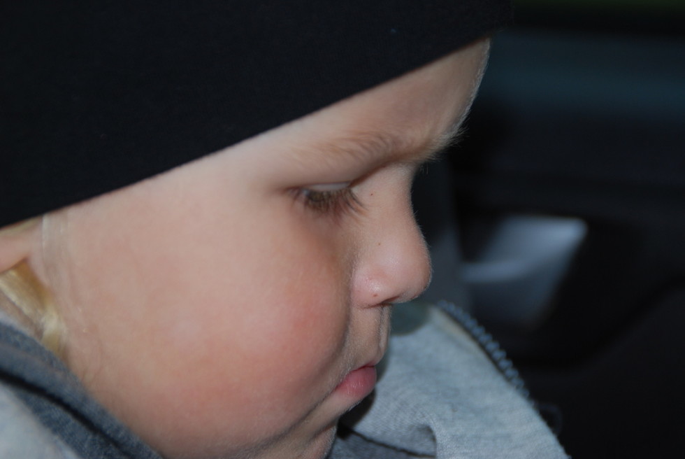 Sen skulle det klappas get. Då fick han sin min som han alltid får när det vankas nåt roligt. Munnen formas på ett sätt som säger att nu jäklarns i min lilla låda ska det bli skojsigt minsann!