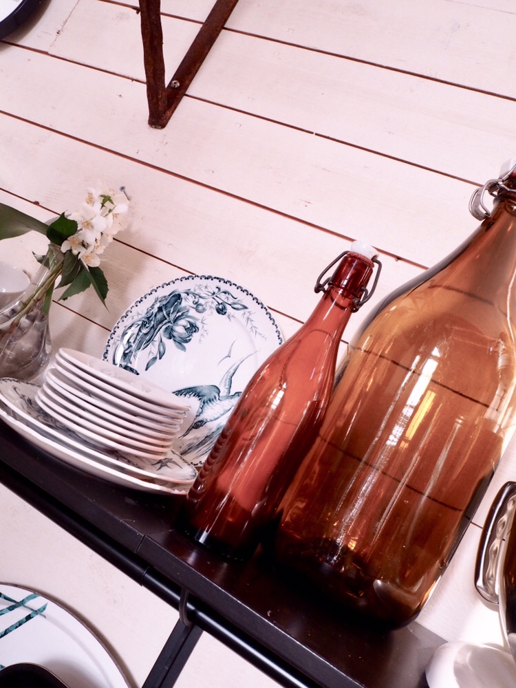 Dels dessa fina stora gamla flaskor. De har en sån där härlig gammal porslinskork som det står Klass 1 på.