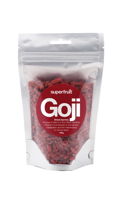 Gojibäret är mycket omtyckt och används världen över för dess höga innehåll av antioxidanter och goda syrliga smak. Galet nog så innehåller gojibär mer betakaroten än morötter och per 100 gram får du i dig 24 % av det dagliga referensintaget av vitamin A. Vitamin A bidrar bland annat till immunsystemets normala funktion och till att bibehålla normal hud och synförmåga. Allt som boostar immunförsvar och hud inför höst och vinter tänker jag. Influensor, magsjukor och gud vet vad som fladdrar runt.