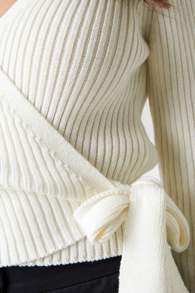 Kolla in denna lilla kofta med omlottknyte?! Såå fint med den stickade rosetten.