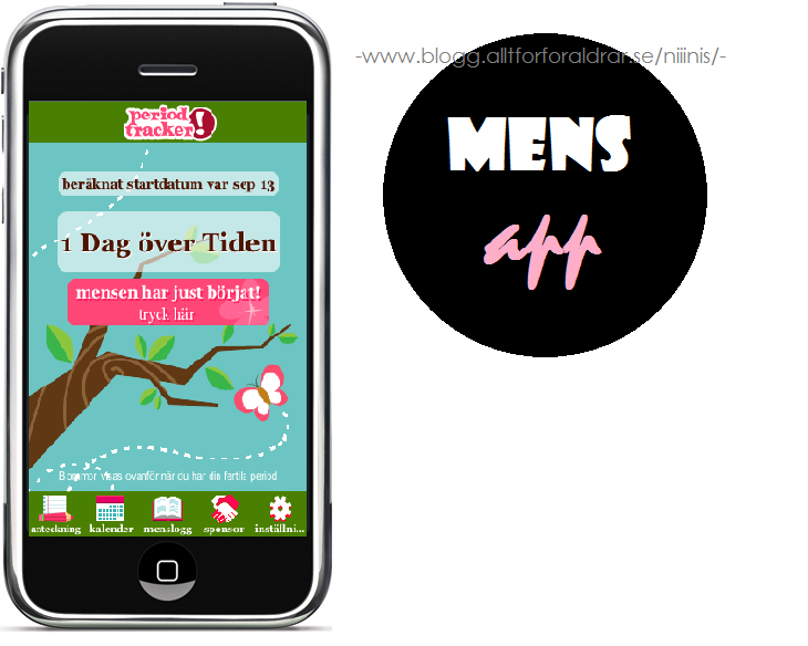Idag fick jag mens! Jag skriver det oftast här på min blogg för att ni alla ska veta. Nä, skoja bara. Det är för att jag 9 gånger av 10 går in på min blogg för att kolla när jag ska ha mens. Det är en svag sida hos mig. Jag är bra på att vara sämst på att anteckna det någonstans. Nu har jag ju den häringa appen då, mens appen. ”Period tracker” heter den om du är intresserad av att ladda ner den. Tänk, hade någon sagt till mig för 20 år sen att jag skulle ha en mens kalender i min mobiltelefon så hade man ju trott att människan var skvatt galen. Den är jättebra, men det gäller att komma ihåg att klicka i den varje gång! Allt som oftast kommer jag på det runt ägglossning och då har man ju liksom glömt när den började. Då brukar jag fråga familjen. Men det är lite mycket begärt av sina barn eller man att hålla koll på min mens. Jag BORDE ju göra det själv ju.