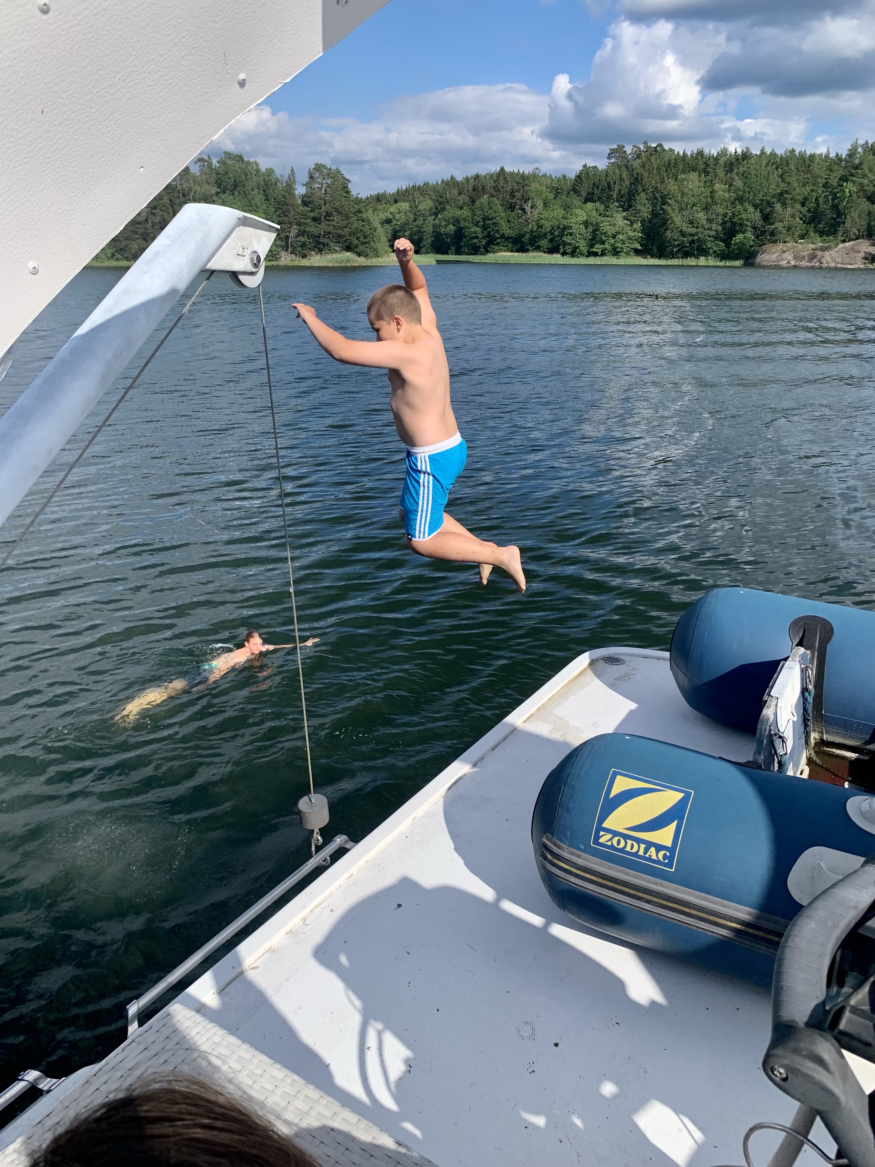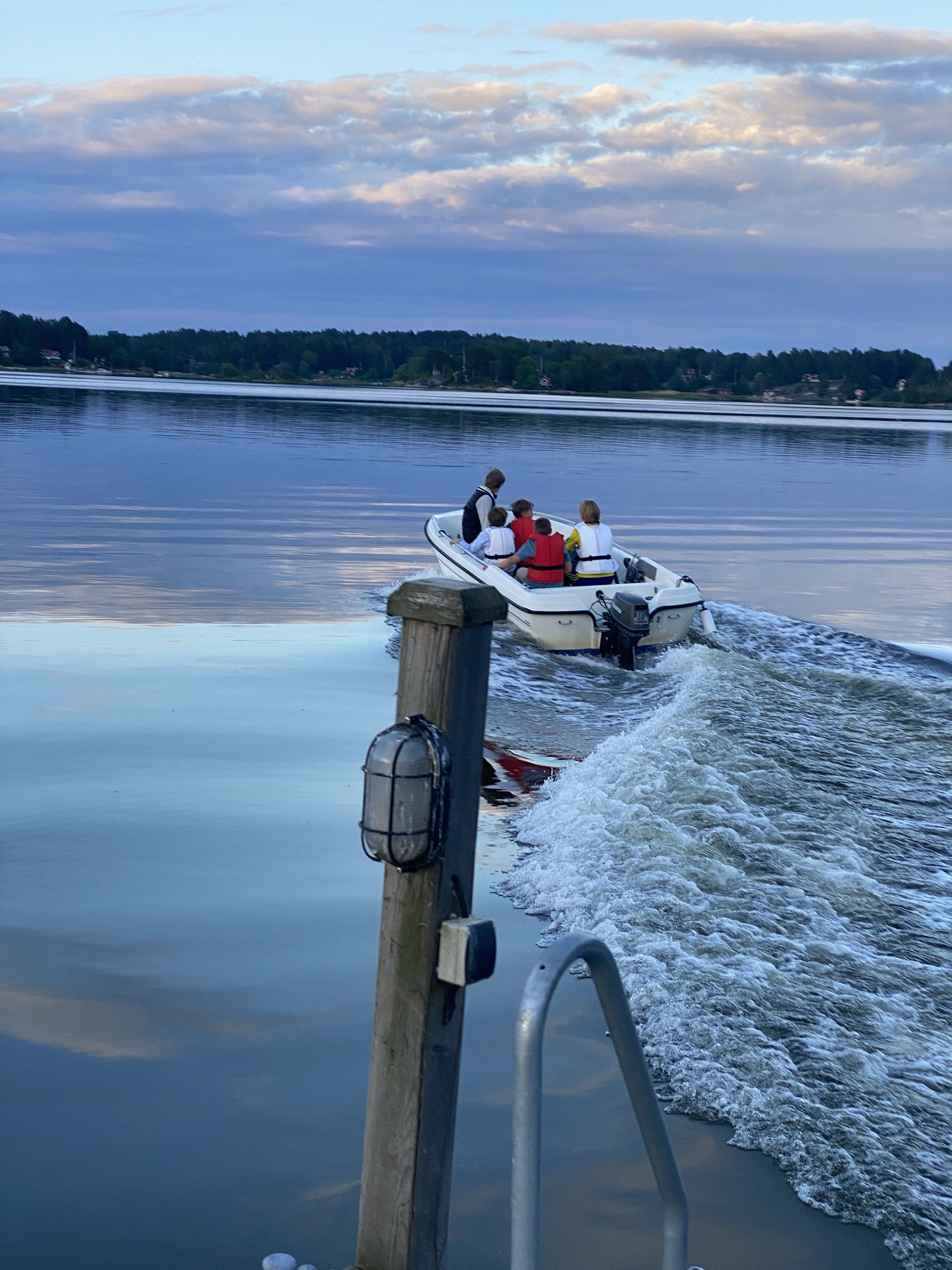 Beppe, Marcus & Terece son har en egen båt som killarna for iväg med. Lugnt vatten och ett gäng killar ut på tur, så härligt ju.