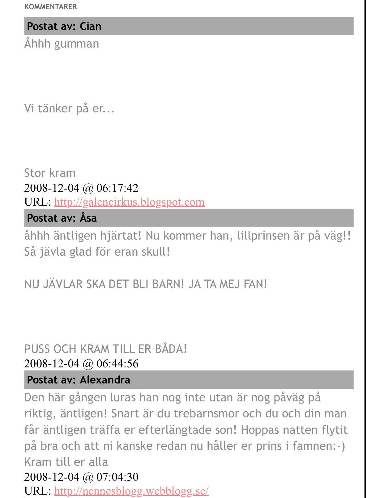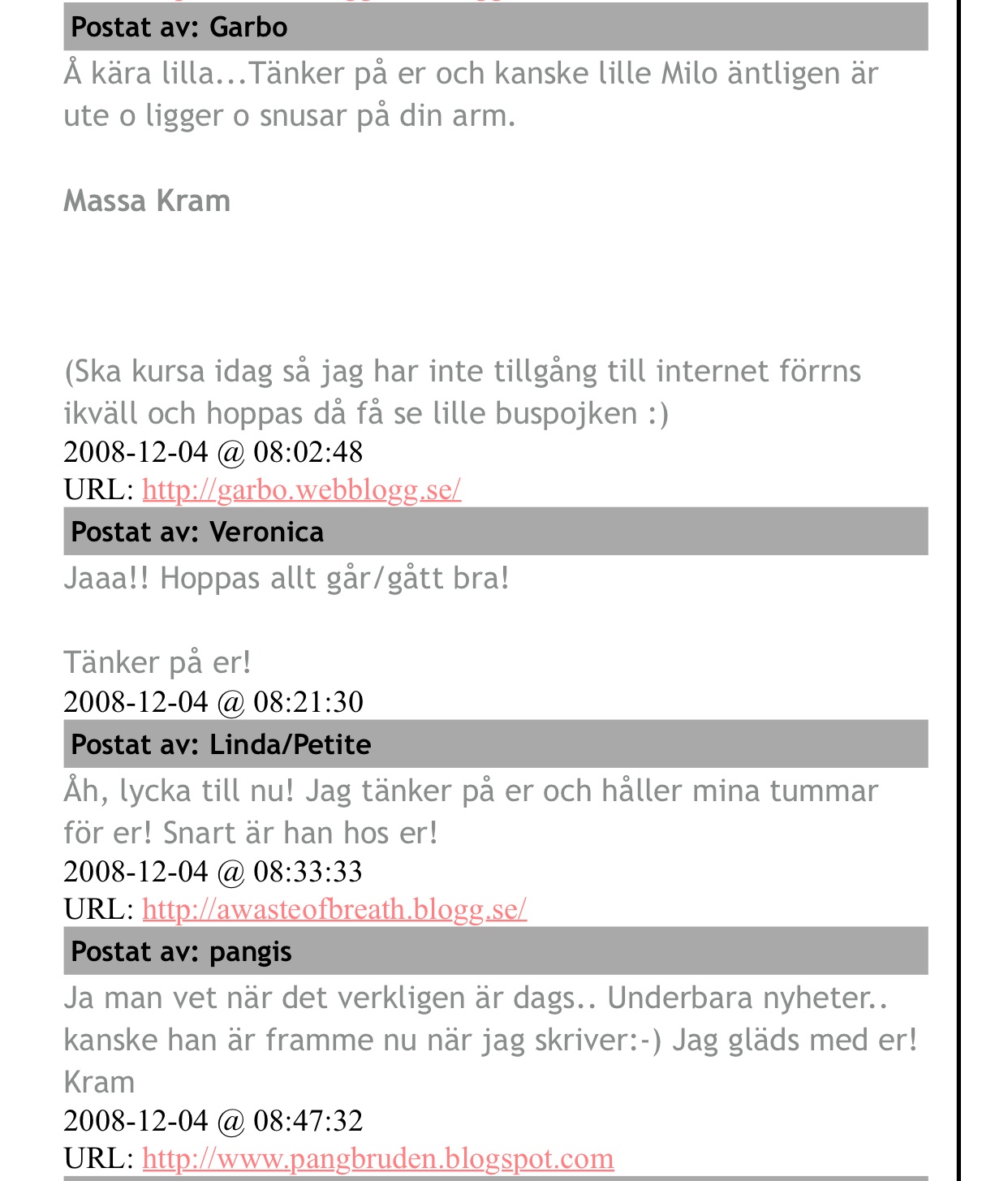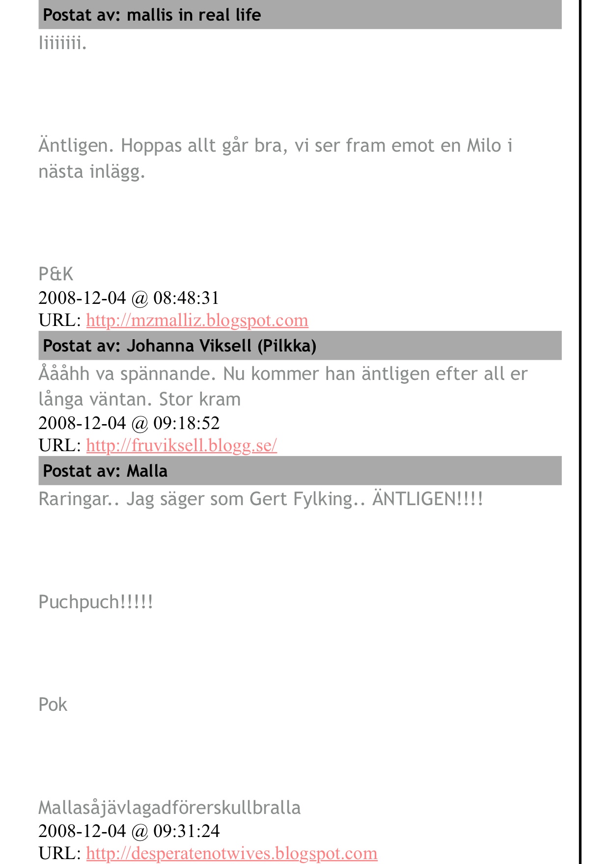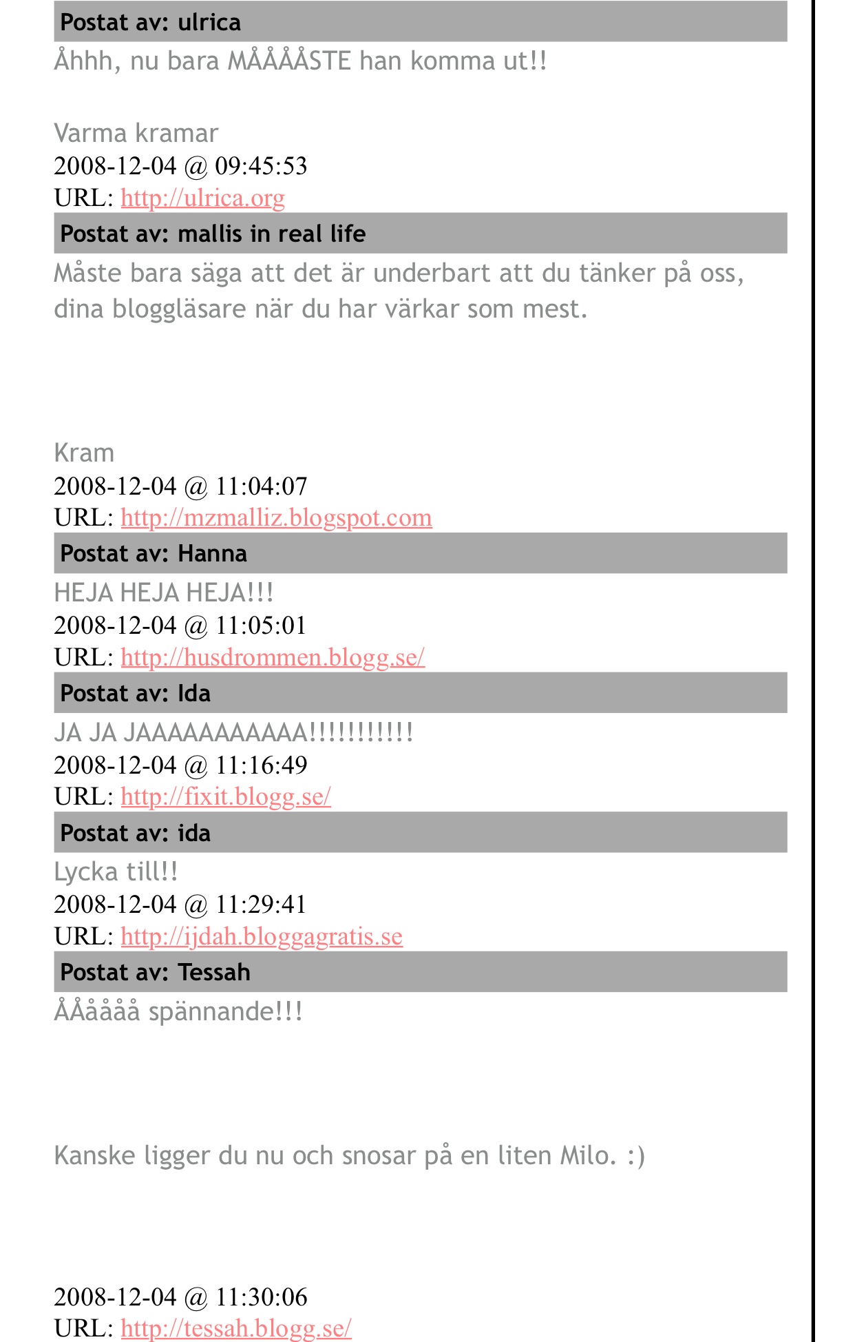 Kommentarer på min blogg innan första bilden på Milo kom: