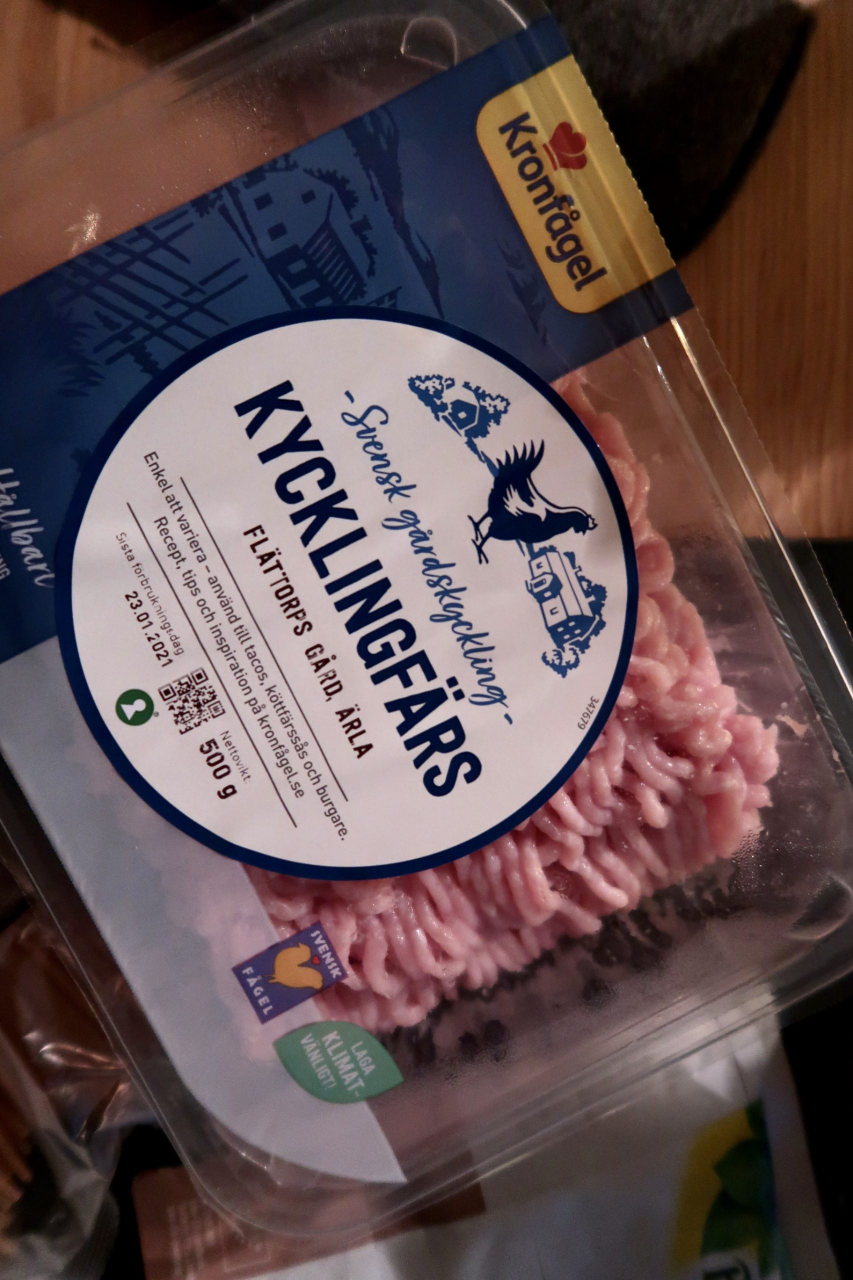 1) Sätt ugnen på 200 grader varmluft eller 225 grader vanlig. Stek kycklingfärsen på ganska hög värme så den blir genomstekt. Ha i tomatpurén och pressa i vitlöksklyftorna. Salta och peppra lite.