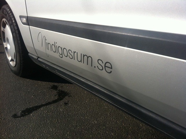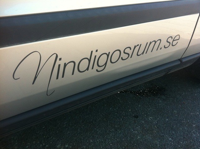 Såhär ser bilen ut med all reklam. Det är hemsideadress under båda dörrarna och sedan i bak. Sen har jag logon bak på sidorna och i bak. Fått många frågor nu på vad det kostar! Det är olika beroende på vad man vill ha men jag kan ärligt säga att det var mycket billigare än jag trodde!
