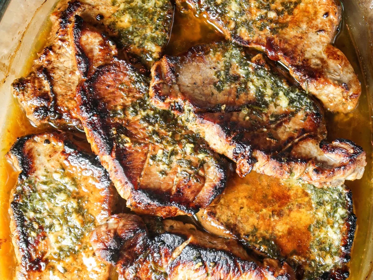 VITLÖKSSMÖRSGRATINERADE FLÄSKKOTLETTER (<klicka)