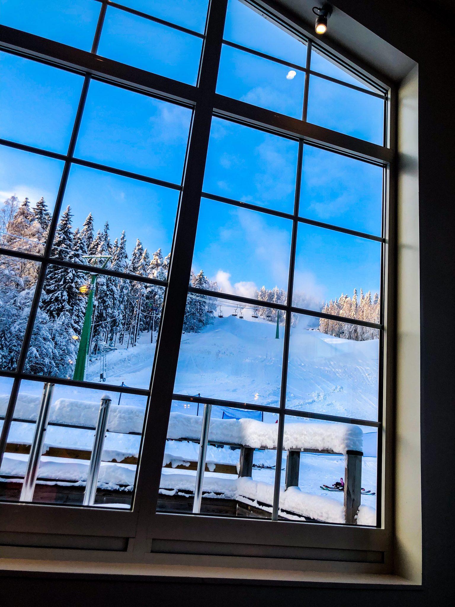 Dagen igår, eller idag som jag tycker det fortfarande känns som, startade med den här vyn. Skidåkning med lilla familj i magisk natur. Lite bitande kyla igår då det var mer än 10 minus i backen så det fick bli lite värmepauser.