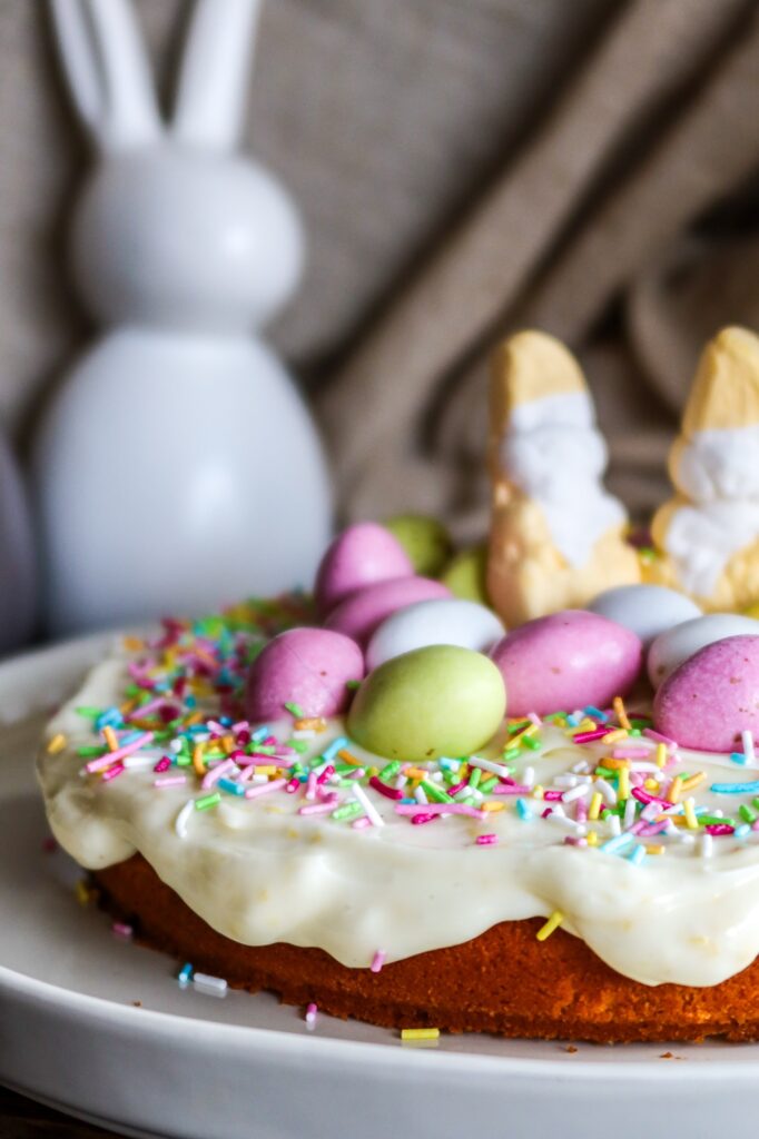 Behöver du en snabb och enkel kaka att svänga ihop till påsken (eller egentligen när som helst på året)? Då måste du prova denna mjuka citronkaka med len frosting – en riktig liten smakbomb som går hem hos både stora och små. Den här citronkakan gör du i springform och toppar med din favoritsort på påskgodis – hur gulligt blir inte det på fikabordet? Jag älskar syrligheten i citronkaka, sådär när det blandas med sött. Fenomenalt gott!
